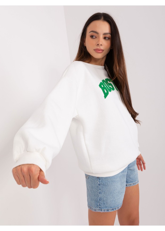 Mikina s nápisom, okrúhly výstrih, lémy na koncoch rukávov a v spodnej časti, univerzálna veľkosť, miery modelky: výška: 175 cm, prsia: 90 cm, pás: 66 cm, boky: 94 cm, rozmer produktu meraného na plocho:, šírka pod plecami: 65 cm, dĺžka rukáva: 65 cm, celková dĺžka: 71 cm.