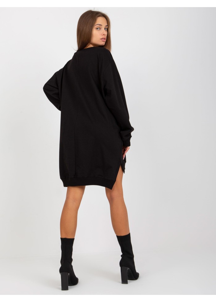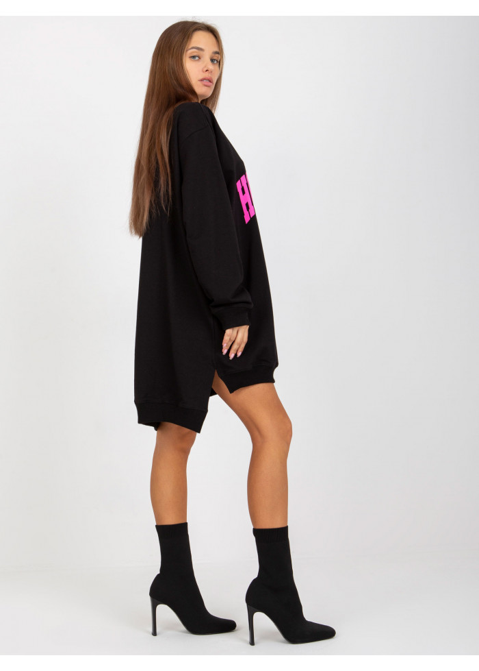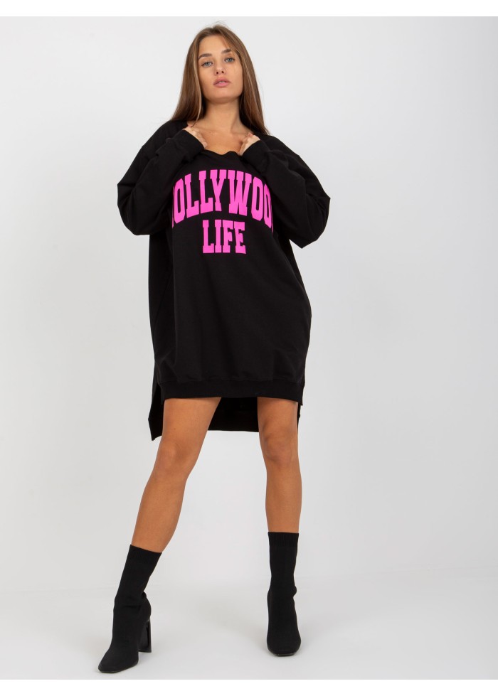 Dámska mikina, asymetrický strih, okrúhly výstrih, lémy na koncoch rukávov a v spodnej časti, rozparky na bokoch, ozdobná potlač, univerzálna veľkosť, miery modelky: výška: 173 cm, prsia: 78 cm, pás: 60 cm, boky: 90 cm, rozmer produktu meraného na plocho:, šírka pod plecami: 65 cm, dĺžka rukáva: 58 cm, celková dĺžka: vpredu: 75 cm, vzadu: 86 cm.