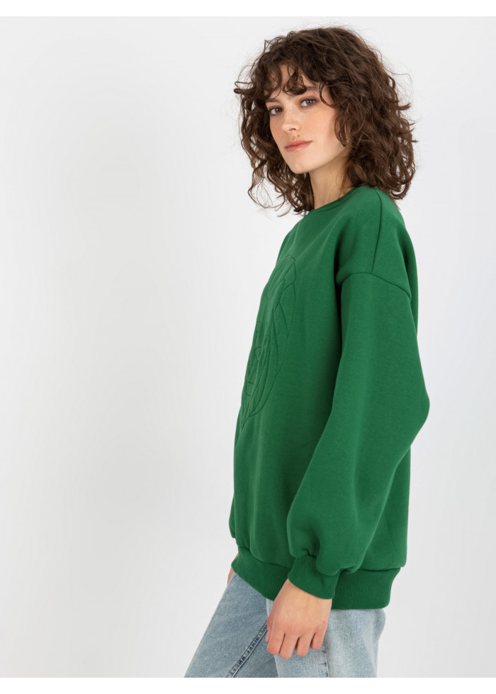 Dámska mikina, ozdobná nášivka, okrúhly výstrih, lémy na koncoch rukávov a v spodnej časti, univerzálna veľkosť, miery modelky: výška: 177 cm, prsia: 84 cm, pás: 62 cm, boky: 89 cm, rozmer produktu meraného na plocho:, šírka pod plecami: 37 cm, dĺžka rukáva: 59 cm, celková dĺžka: 51 cm.