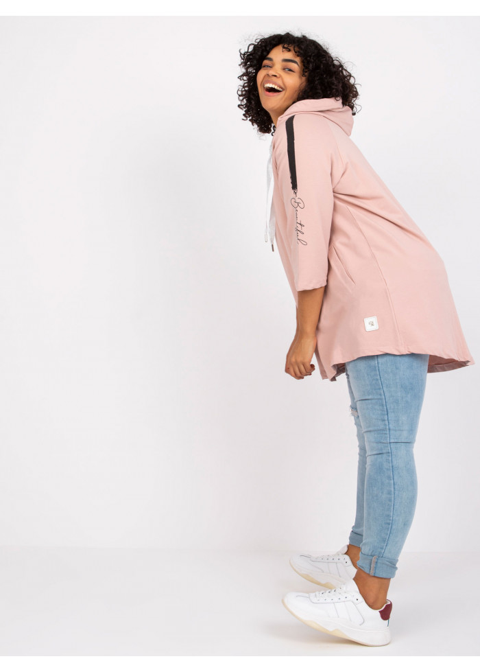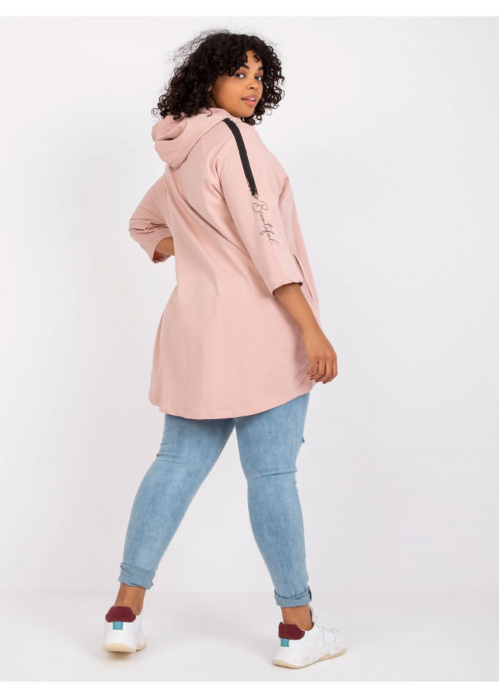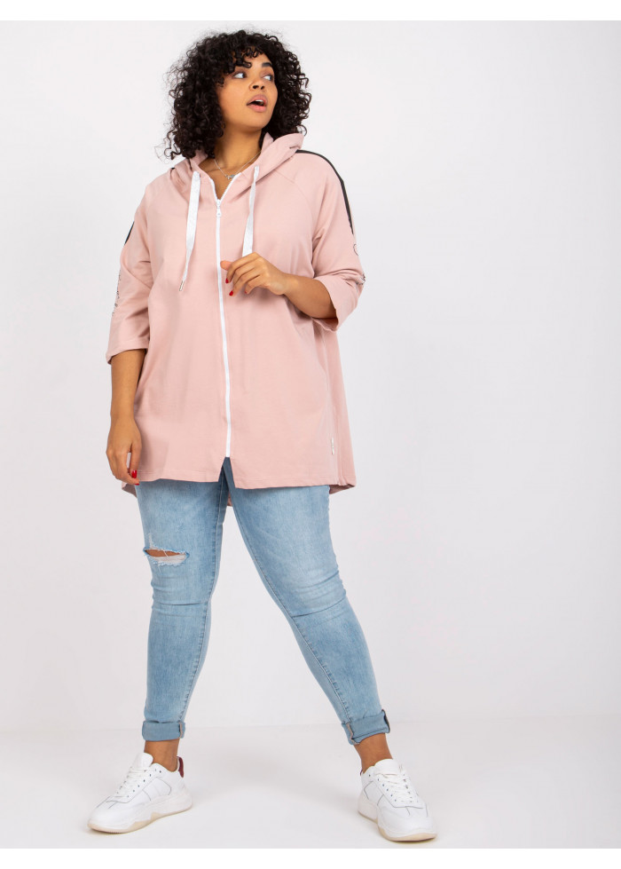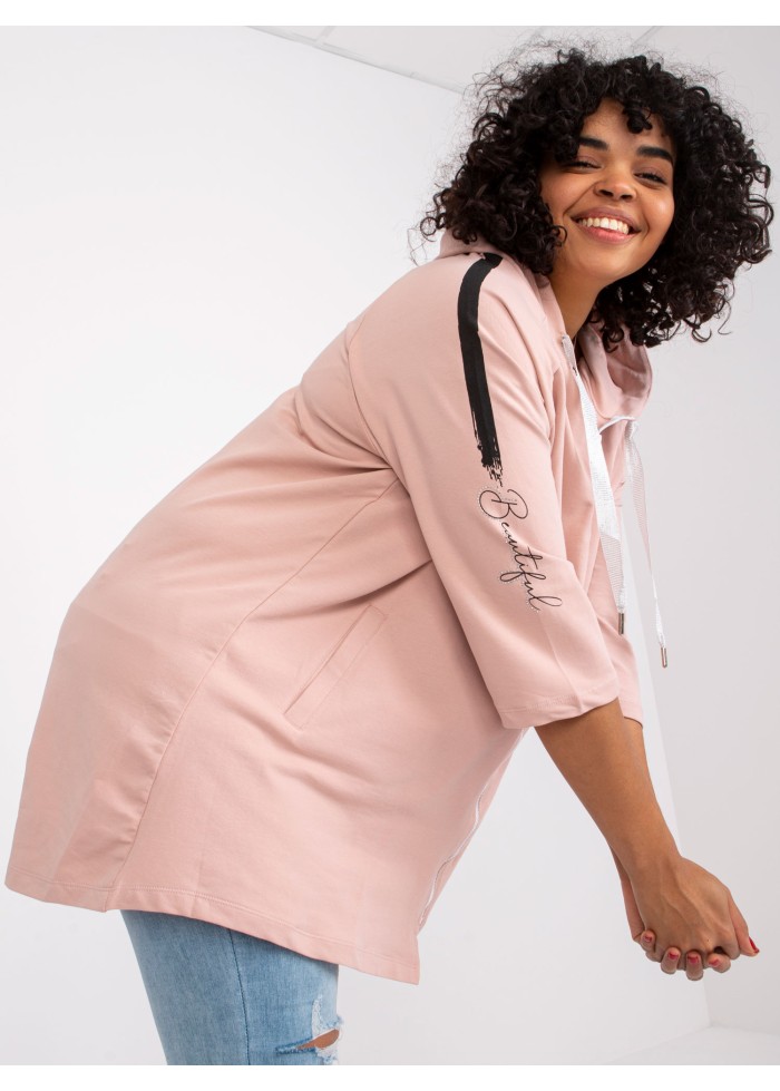 Dámska mikina na zips, dámska bavlnená mikina s kapucňou, asymetrický strih, ozdobné šnúrky na kapucni, 3/4 rukávy, ozdobné aplikácie, nápisy, vrecká, spôsob prania: pranie v práčke na 30°c, materiál: 90% bavlna, 10% elastan, univerzálna veľkosť, miery modelky: výška: 175 cm, prsia: 103 cm, pás: 86 cm, boky: 118 cm, rozmer produktu meraného na plocho:, šírka pod plecami: 64 cm, celková dĺžka: vpredu: 80 cm, vzadu: 87 cm dĺžka rukávov: 42 cm.