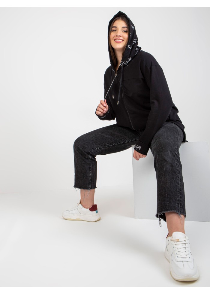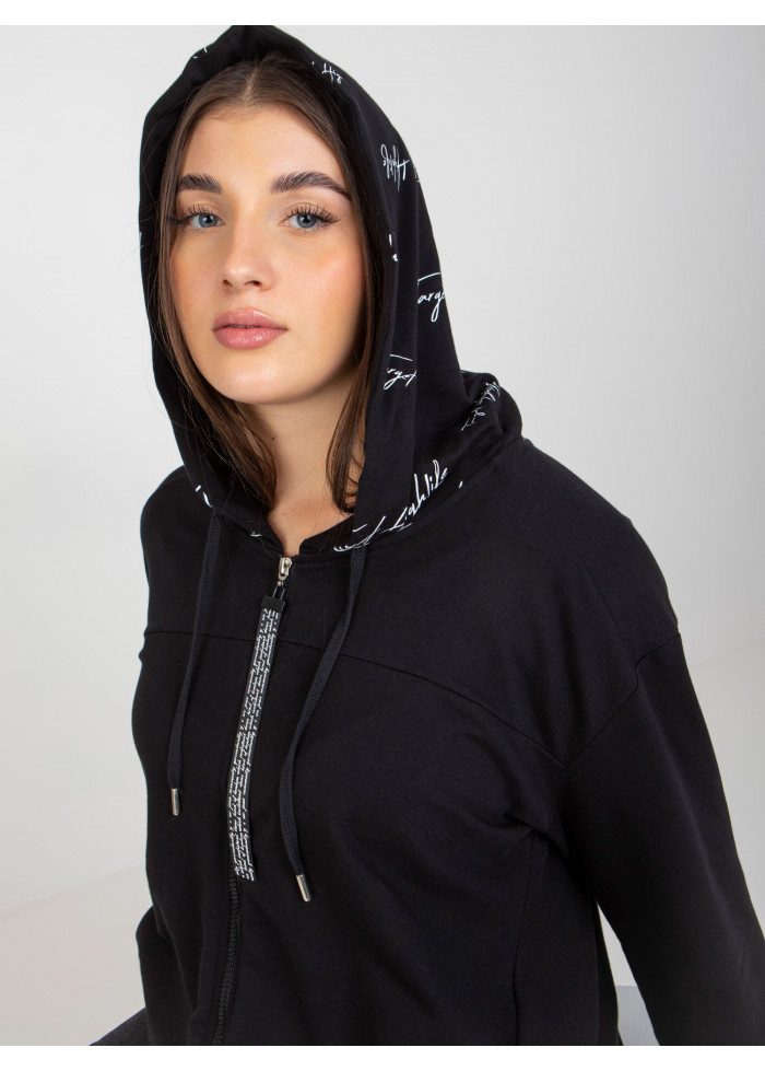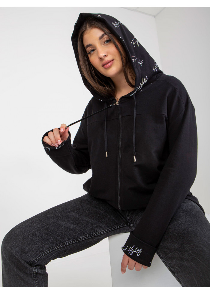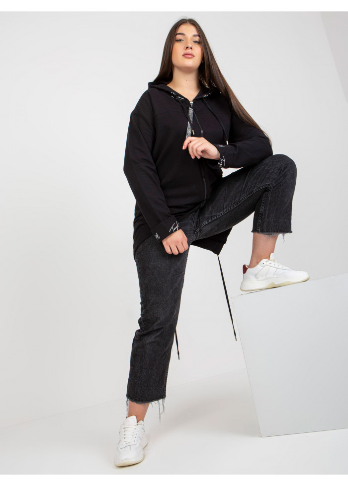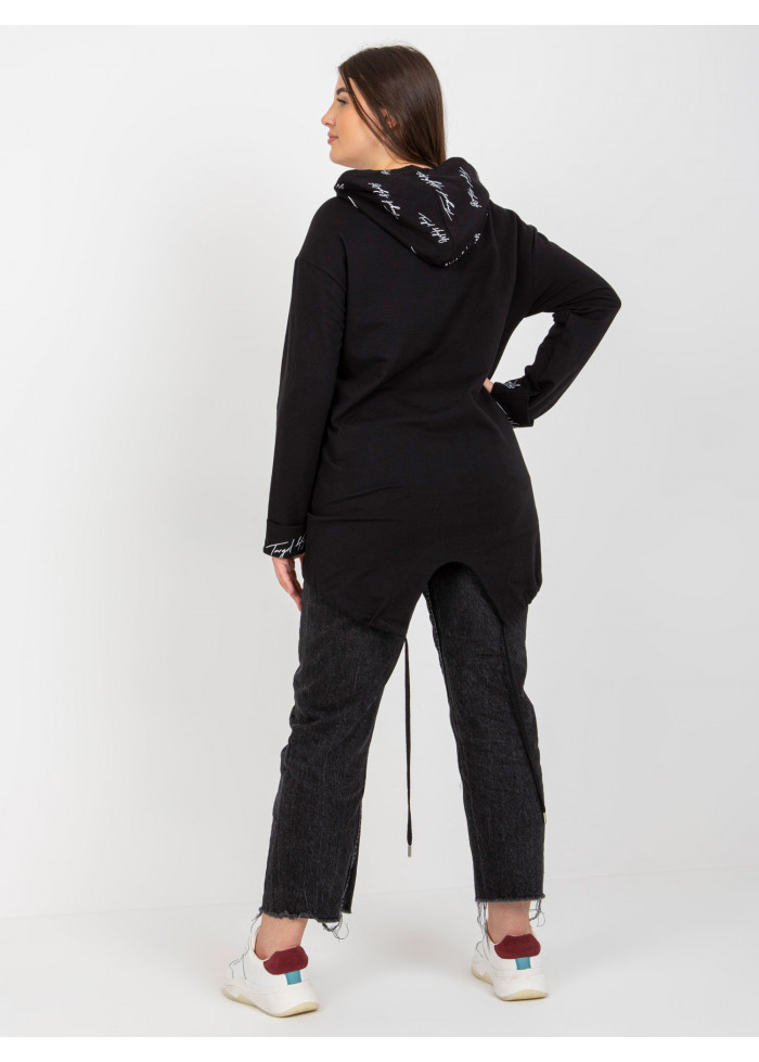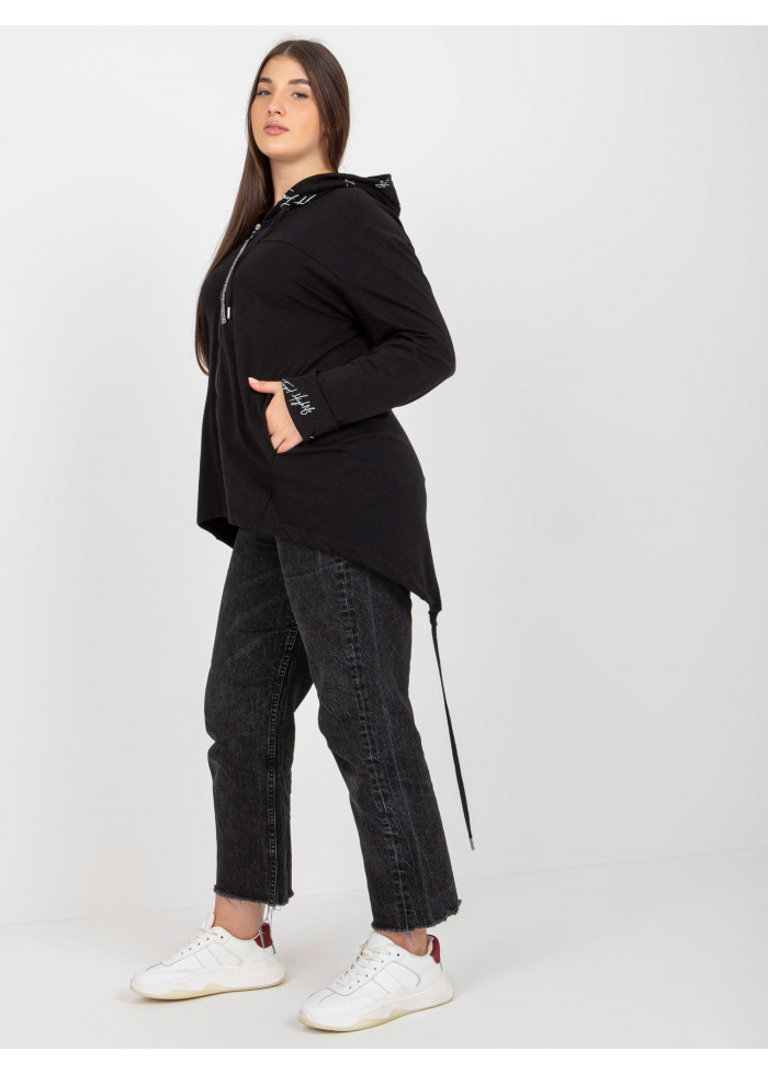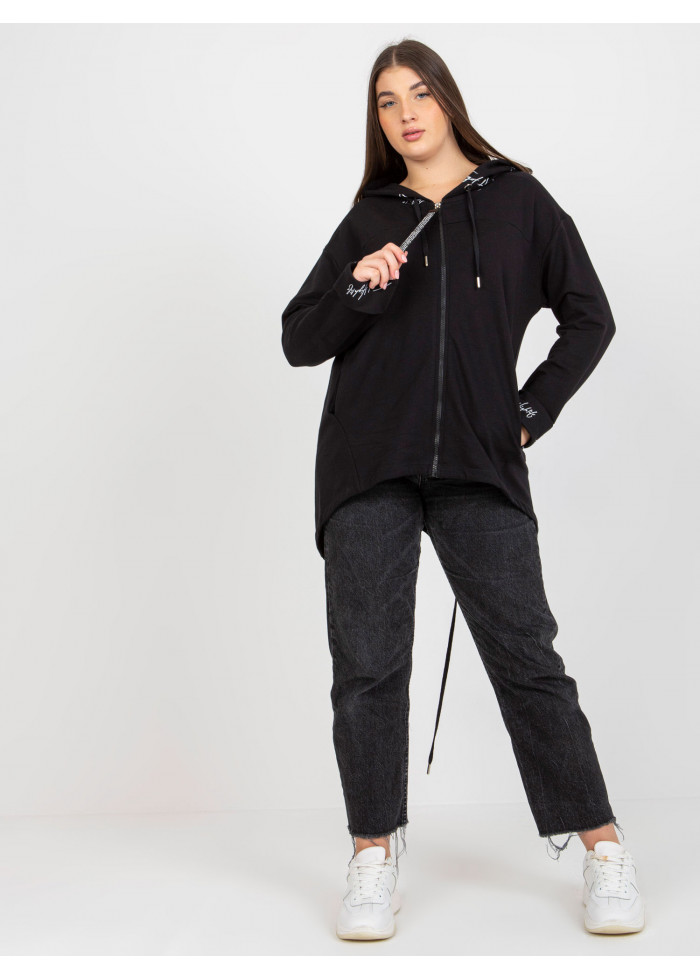 Asymetrická dámska mikina s kapucňou, výstrih a šnúrky vzadu, ozdobné šnúrky na kapucni, ozdobná potlač na kapucni, zapínanie na zips, 2 vrecká, ozdobné lémy na rukávoch, spôsob prania: pranie v práčke na 30°c, materiál: 95% bavlna, 5% elastan, univerzálna veľkosť, miery modelky: výška: 174 cm, prsia: 100 cm, pás: 74 cm, boky: 107 cm, rozmer produktu meraného na plocho:, šírka pod plecami: 59 cm, dĺžka rukáva: 62 cm, celková dĺžka: vpredu: 67 cm, vzadu: 79 cm.