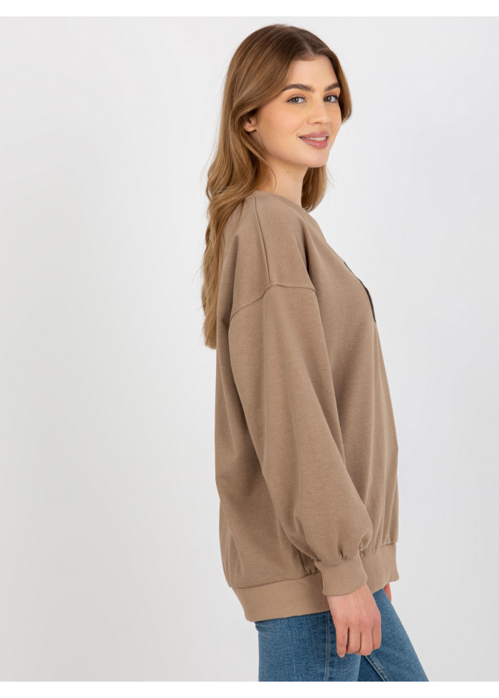 Dámska mikina, okrúhly výstrih, ozdobná nášivka, lémy na koncoch rukávov a v spodnej časti, univerzálna veľkosť, miery modelky: výška: 173 cm, prsia: 78 cm, pás: 60 cm, boky: 90 cm, rozmer produktu meraného na plocho:, šírka pod plecami: 61 cm, dĺžka rukáva: 59 cm, celková dĺžka: 69 cm.