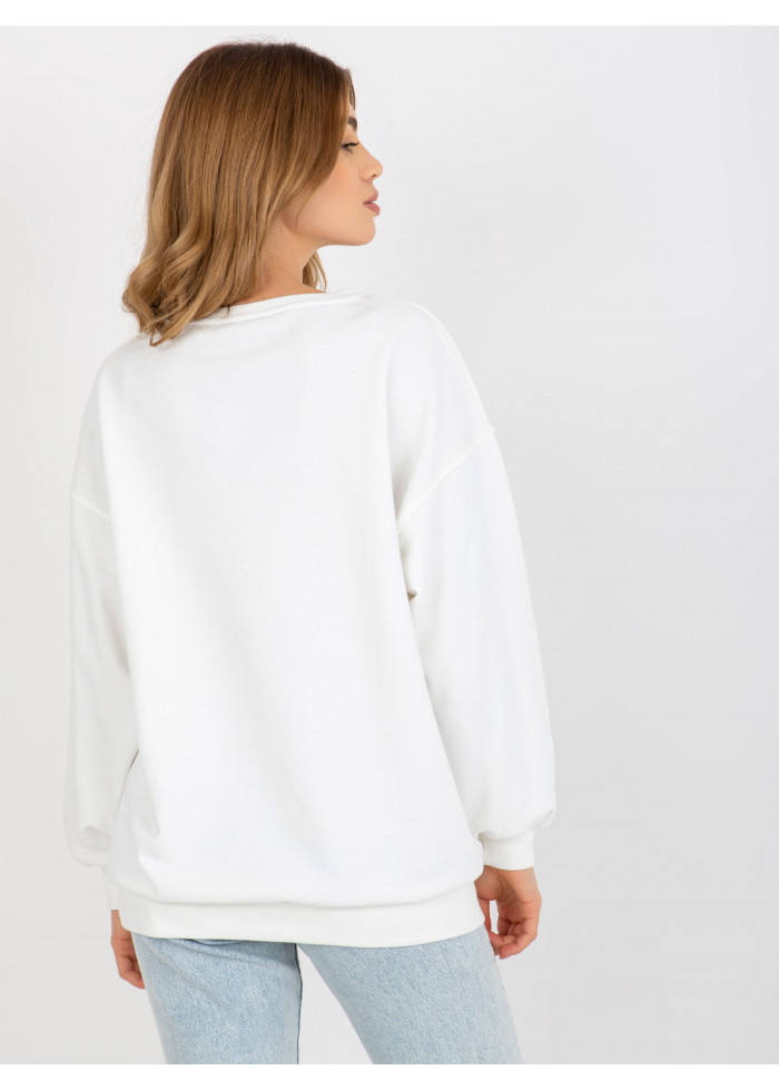 Dámska mikina, okrúhly výstrih, ozdobná nášivka, lémy na koncoch rukávov a v spodnej časti, univerzálna veľkosť, miery modelky: výška: 173 cm, prsia: 78 cm, pás: 60 cm, boky: 90 cm, rozmer produktu meraného na plocho:, šírka pod plecami: 61 cm, dĺžka rukáva: 59 cm, celková dĺžka: 69 cm.