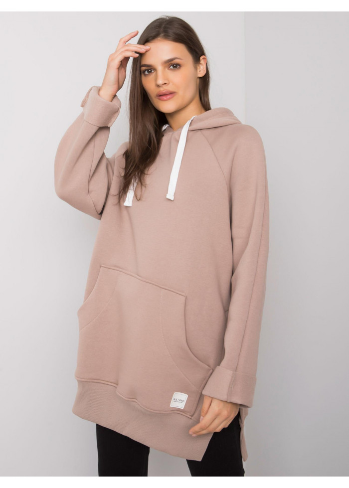 Dámska mikina v strihu over size, pohodlný voľný strih, kapucňa so sťahovacími šnúrkami, dlhé široké rukávy, klokanie vrecko, našitá aplikácia na vrecku, po bokoch veľké rozparky, materiál: 90% bavlna, 10% elastan, spôsob prania: pranie v práčke na 30°c, modelka má na sebe veľkosť s/m. rozmery modelky: výška 176,5 cm, prsia 83 cm, pás 55 cm, boky 88 cm., rozmery mikiny vo veľkosti s/m merané naplocho: šírka v podpazuší - 60 cm, celková dĺžka - 80 cm, dĺžka rukáva - 64 cm.