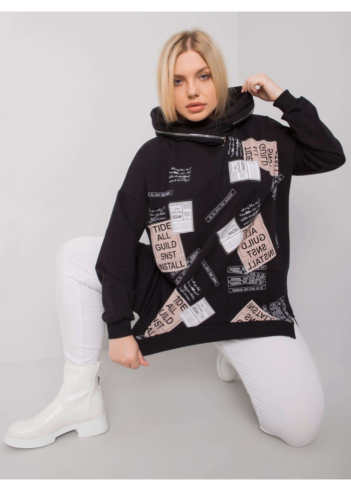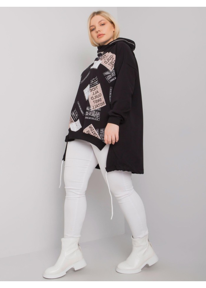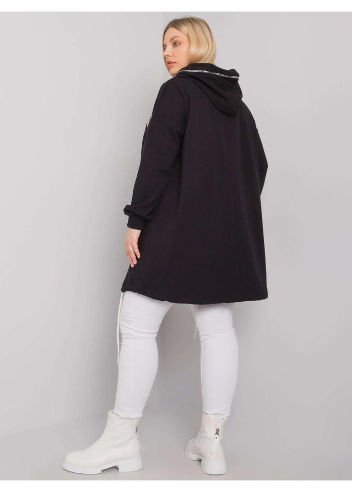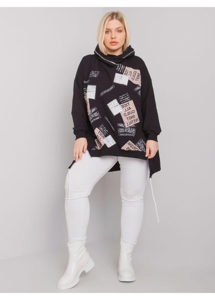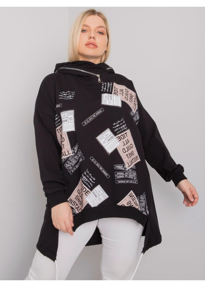 Asymetrická dámska mikina s kapucňou, šnúrka v zadnej časti, lémy na koncoch rukávov, ozdobná potlač, ozdobný zips na kapucni, ozdobné prešívanie, spôsob prania: pranie v práčke na 30°c, materiál: 90% bavlna, 10% elastan, univerzálna veľkosť, miery modelky: výška: 172 cm, prsia: 102 cm, pás: 77 cm, boky: 118 cm, rozmer produktu meraného na plocho:, šírka pod plecami: 65 cm, dĺžka rukáva: 63 cm, celková dĺžka: 84 cm.