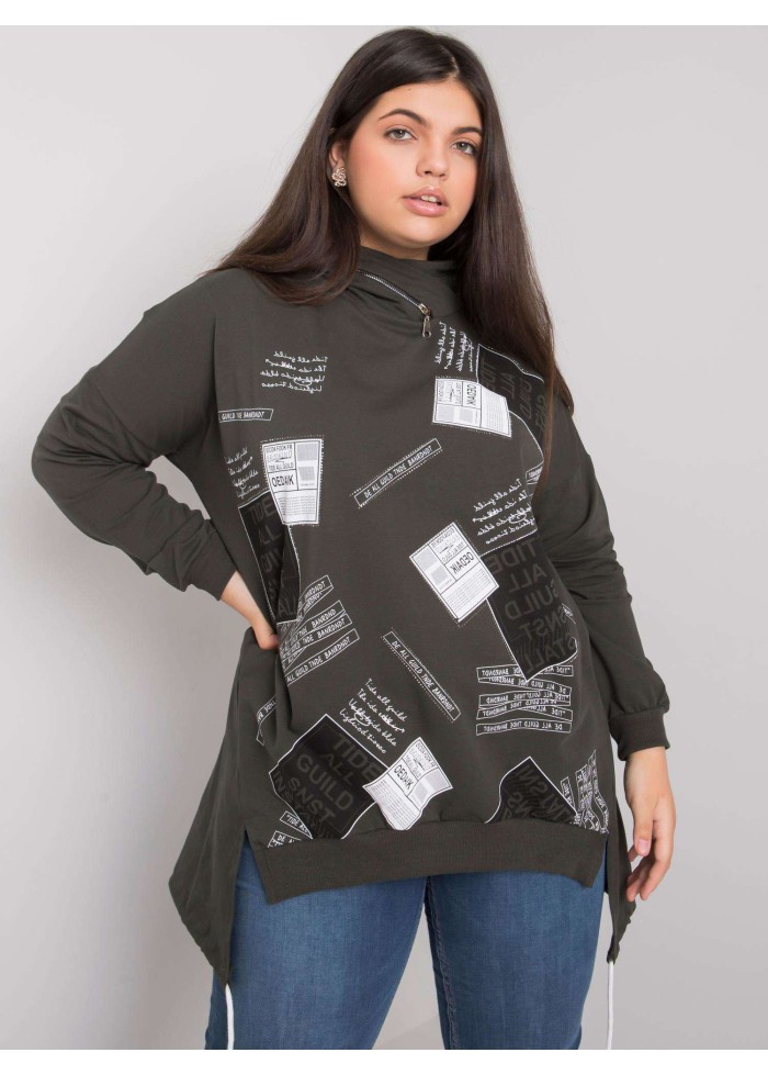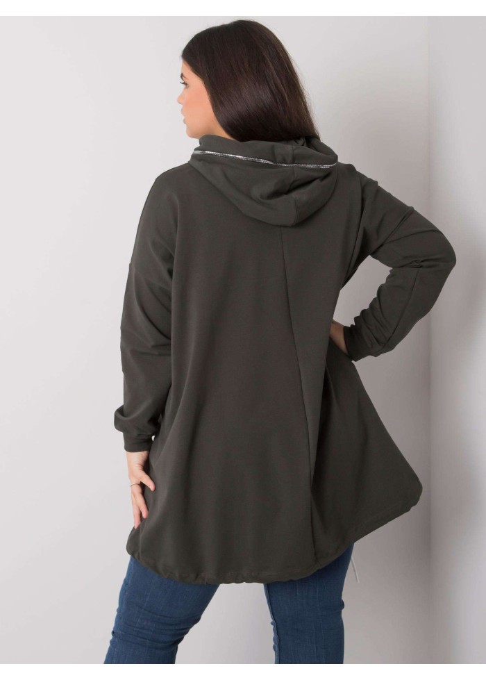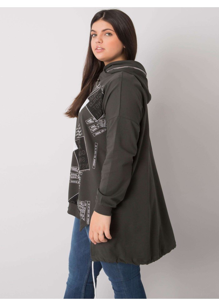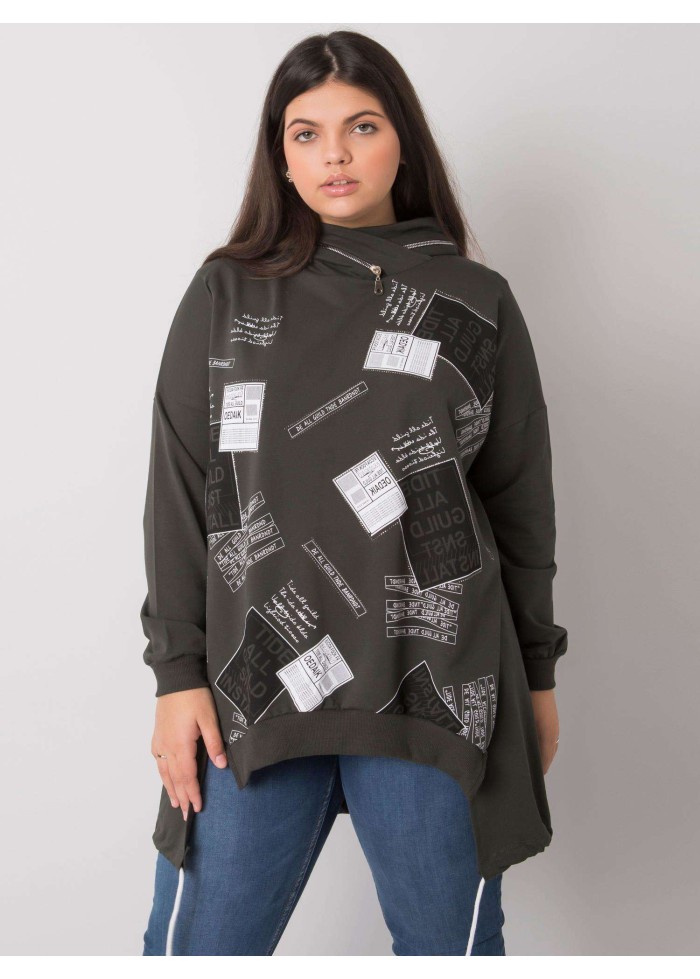 Asymetrická dámska mikina s kapucňou, šnúrka v zadnej časti, lémy na koncoch rukávov, ozdobná potlač, ozdobný zips na kapucni, ozdobné prešívanie, spôsob prania: pranie v práčke na 30°c, materiál: 90% bavlna, 10% elastan, univerzálna veľkosť, miery modelky: výška: 172 cm, prsia: 102 cm, pás: 77 cm, boky: 118 cm, rozmer produktu meraného na plocho:, šírka pod plecami: 65 cm, dĺžka rukáva: 63 cm, celková dĺžka: 84 cm.