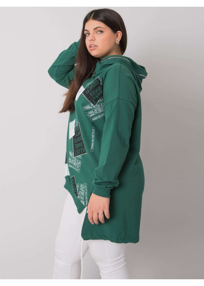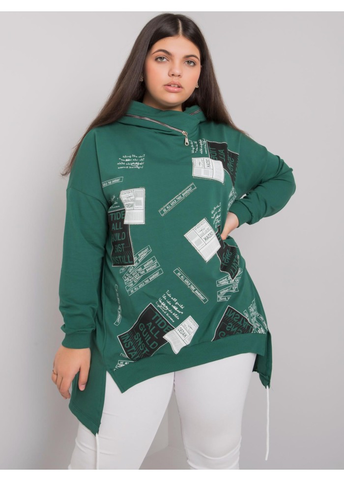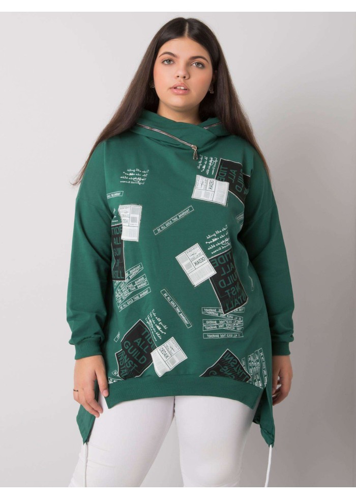 Asymetrická dámska mikina s kapucňou, šnúrka v zadnej časti, lémy na koncoch rukávov, ozdobná potlač, ozdobný zips na kapucni, ozdobné prešívanie, spôsob prania: pranie v práčke na 30°c, materiál: 90% bavlna, 10% elastan, univerzálna veľkosť, miery modelky: výška: 172 cm, prsia: 102 cm, pás: 77 cm, boky: 118 cm, rozmer produktu meraného na plocho:, šírka pod plecami: 65 cm, dĺžka rukáva: 63 cm, celková dĺžka: 84 cm.
