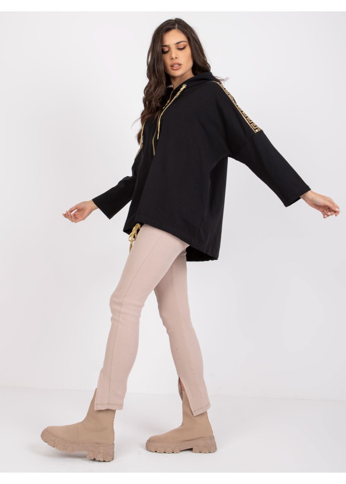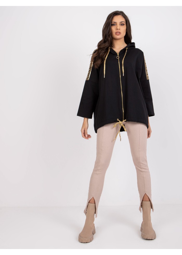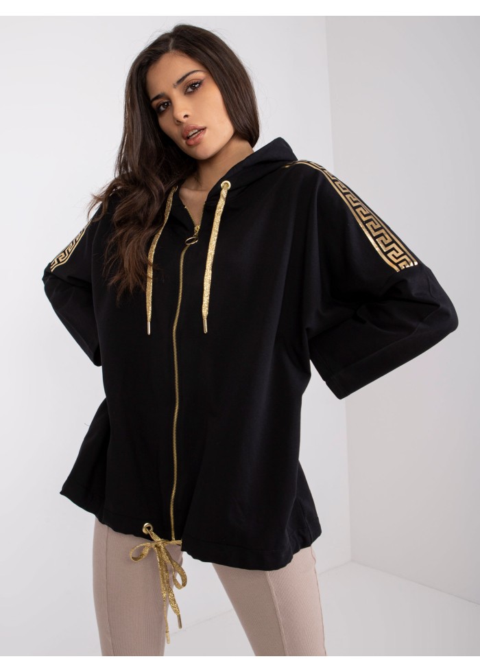 Dámska mikina s kapucňou, ozdobné šnúrky na kapucni, ozdobné šnúrky v spodnej časti, zapínanie na zips, ozdobná potlač, 2 vrecká, štýlový oversize strih, doplnky zlatej farby, spôsob prania: pranie v práčke na 30°c, materiál: 90% bavlna, 10% elastan, modelka má na sebe veľkosť s/m, miery modelky: výška: 176 cm, prsia: 86 cm, pás: 60 cm, boky: 88 cm, rozmer produktu meraného na plocho:, šírka pod plecami: 71 cm, dĺžka rukáva: 54 cm, celková dĺžka: 73 cm.