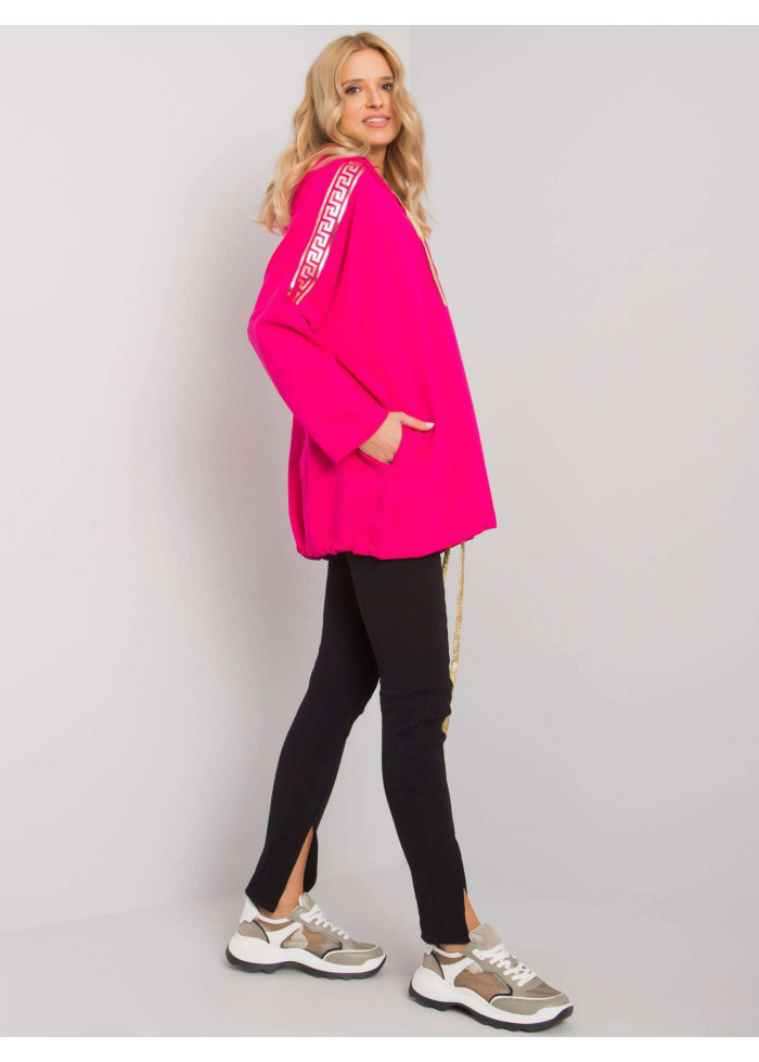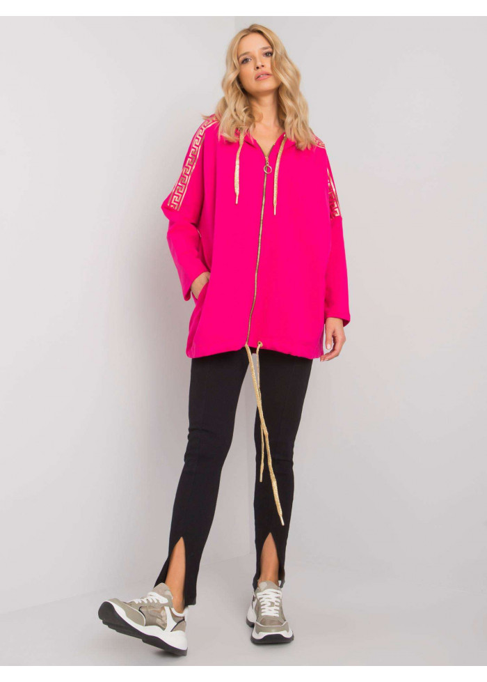 Dámska mikina s kapucňou, ozdobné šnúrky na kapucni, ozdobné šnúrky v spodnej časti, zapínanie na zips, ozdobná potlač, 2 vrecká, štýlový oversize strih, doplnky zlatej farby, spôsob prania: pranie v práčke na 30°c, materiál: 90% bavlna, 10% elastan, modelka má na sebe veľkosť s/m, miery modelky: výška: 176 cm, prsia: 86 cm, pás: 60 cm, boky: 88 cm, rozmer produktu meraného na plocho:, šírka pod plecami: 71 cm, dĺžka rukáva: 54 cm, celková dĺžka: 73 cm.
