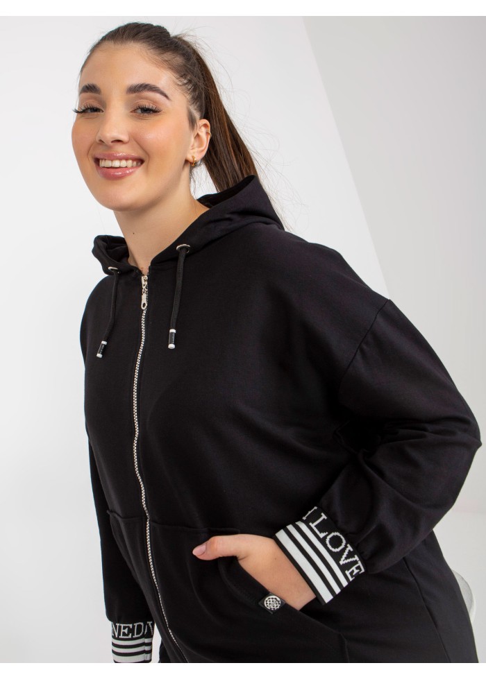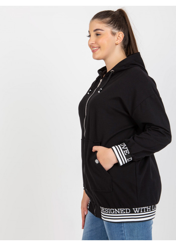 Dámska mikina s kapucňou, ozdobné šnúrky na kapucni, zapínanie na zips, 2 vrecká, lémy na koncoch rukávov a v spodnej časti, univerzálna veľkosť, miery modelky: výška: 174 cm, prsia: 100 cm, pás: 74 cm, boky: 107 cm, rozmer produktu meraného na plocho:, šírka pod plecami: 65 cm, dĺžka rukáva: 56 cm, celková dĺžka: 77 cm.