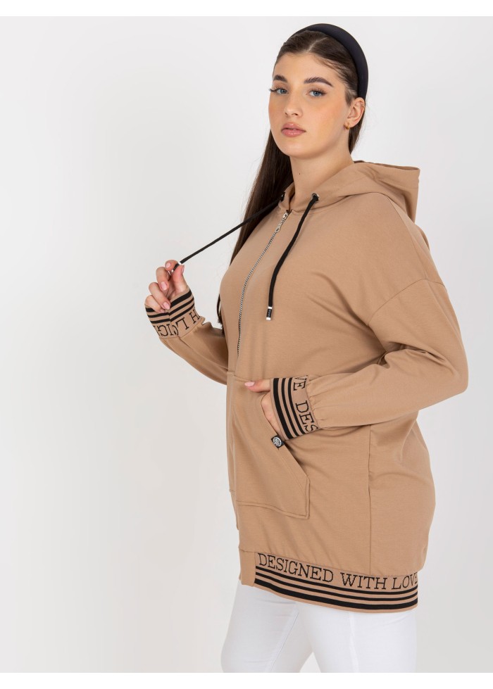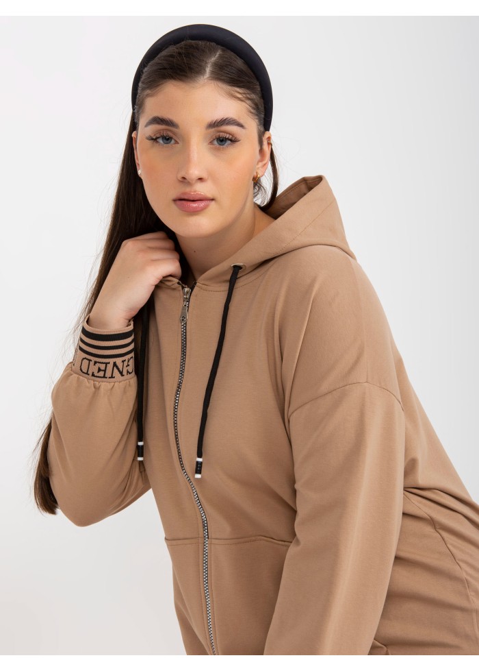 Dámska mikina s kapucňou, ozdobné šnúrky na kapucni, zapínanie na zips, 2 vrecká, lémy na koncoch rukávov a v spodnej časti, univerzálna veľkosť, miery modelky: výška: 174 cm, prsia: 100 cm, pás: 74 cm, boky: 107 cm, rozmer produktu meraného na plocho:, šírka pod plecami: 65 cm, dĺžka rukáva: 56 cm, celková dĺžka: 77 cm.