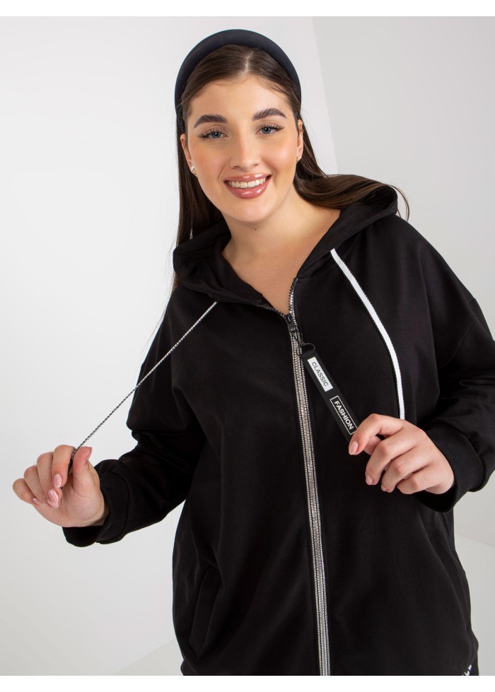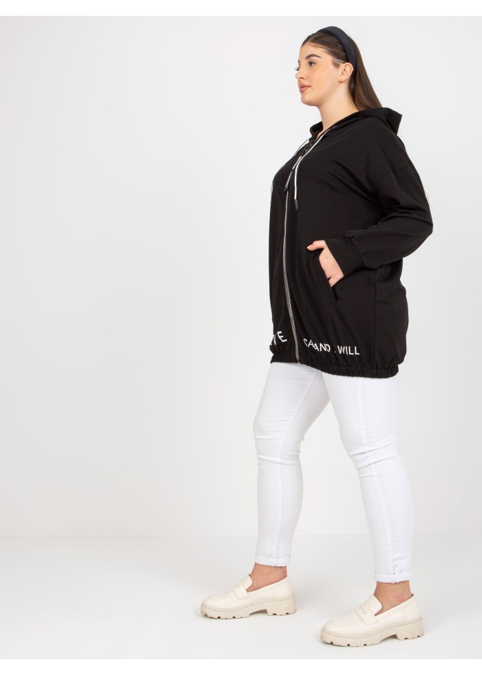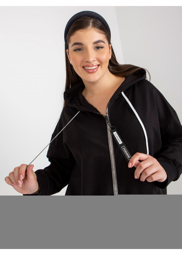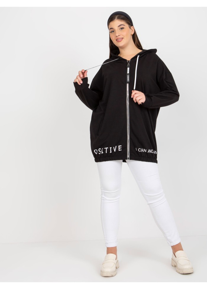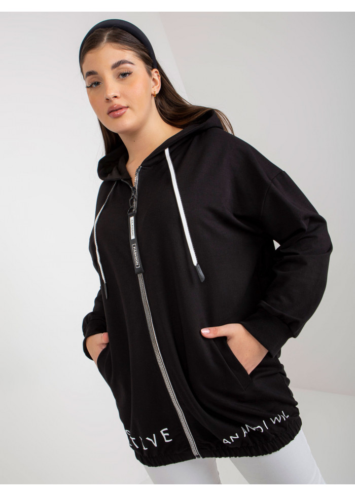 Dámska mikina s kapucňou, ozdobné šnúrky na kapucni, zapínanie na zips, 2 vrecká, sťahujúca guma v spodnej časti, lémy na koncoch rukávov, univerzálna veľkosť, miery modelky: výška: 174 cm, prsia: 100 cm, pás: 74 cm, boky: 107 cm, rozmer produktu meraného na plocho:, šírka pod plecami: 65 cm, dĺžka rukáva: 58 cm, celková dĺžka: 76 cm.