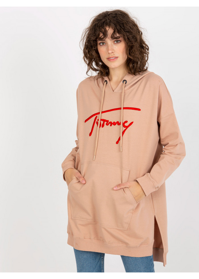 Predĺžená mikina s kapucňou, mikinová tunika, ozdobné šnúrky na kapucni, ozdobná nášivka, lémy na koncoch rukávov a v spodnej časti, rozparky na bokoch, univerzálna veľkosť, miery modelky: výška: 175 cm, prsia: 84 cm, pás: 61 cm, boky: 91 cm, rozmer produktu meraného na plocho:, šírka pod plecami: 69 cm, dĺžka rukáva: 60 cm, celková dĺžka: 85 cm.