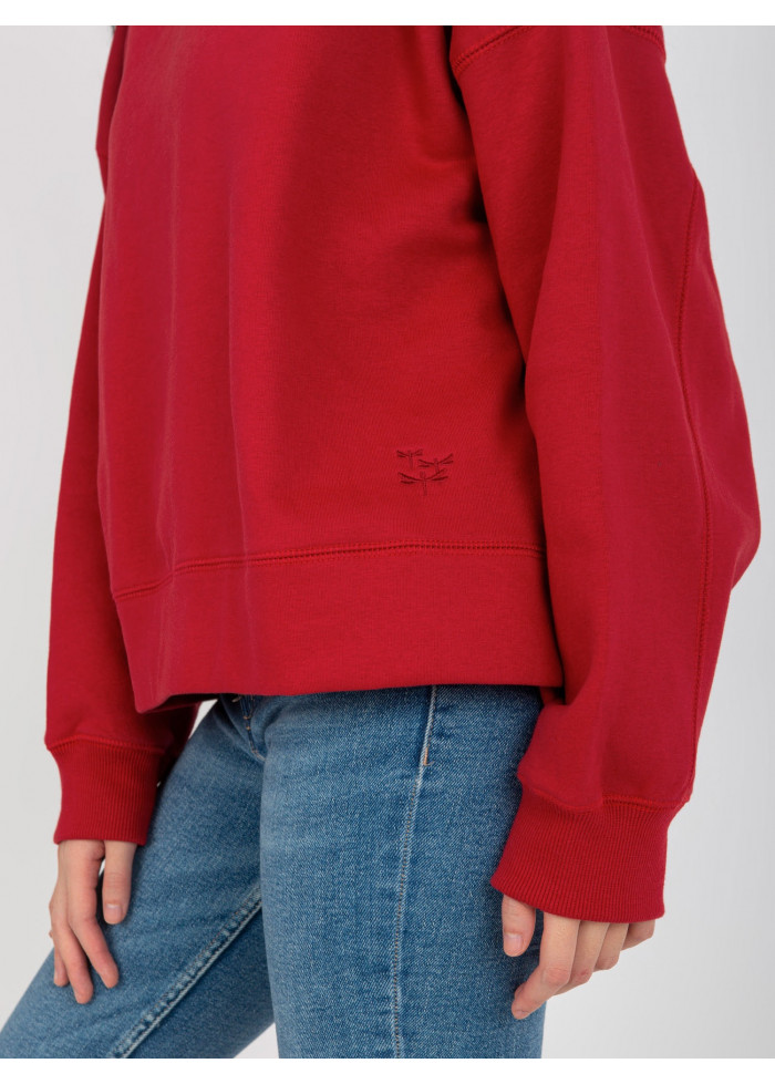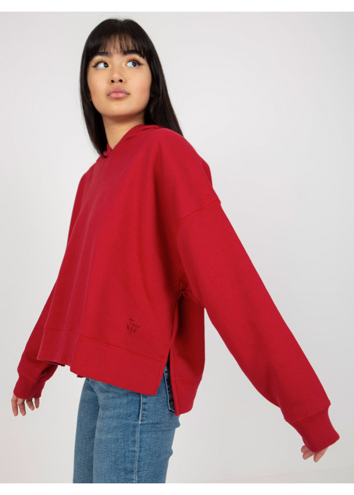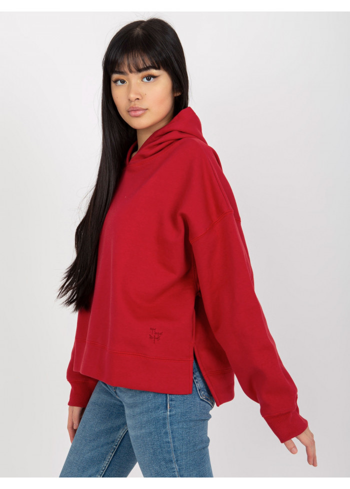 Asymetrická dámska mikina s kapucňou, lémy na koncoch rukávov a v spodnej časti, rozparky na bokoch, ozdobná nášivka, modelka má na sebe veľkosť s/m, miery modelky: výška: 167 cm, prsia: 73 cm, pás: 64 cm, boky: 91 cm, rozmer produktu meraného na plocho, vo veľkosti s/m:, šírka pod plecami: 65 cm, dĺžka rukáva: 61 cm, celková dĺžka: vpredu: 54 cm, vzadu: 58 cm.