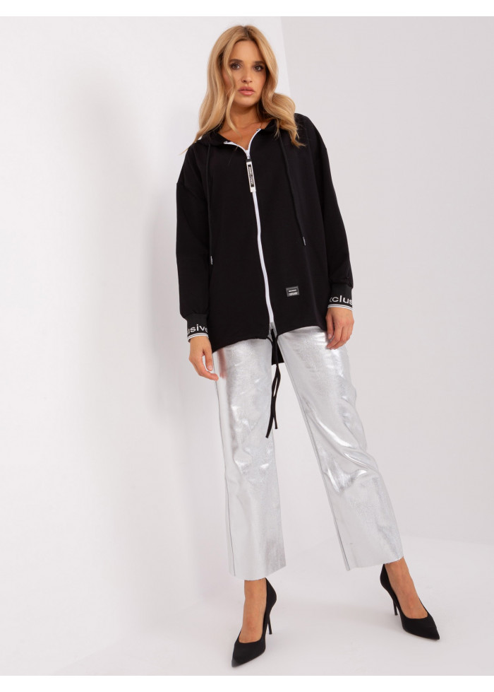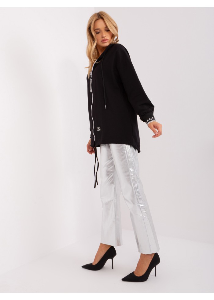 Asymetrická mikina s kapucňou, zapínanie na zips, 2 vrecká, šnúrka v spodnej časti, ozdobné nášivky, ozdobné lémy na rukávoch, modelka má na sebe veľkosť s/m, miery modelky: výška 176 cm, prsia 85 cm, pás 64 cm, boky 92 cm, rozmer produktu meraného na plocho, vo veľkosti s/m:, šírka pod plecami: 63 cm, dĺžka rukáva: 58 cm, celková dĺžka: 78 cm.