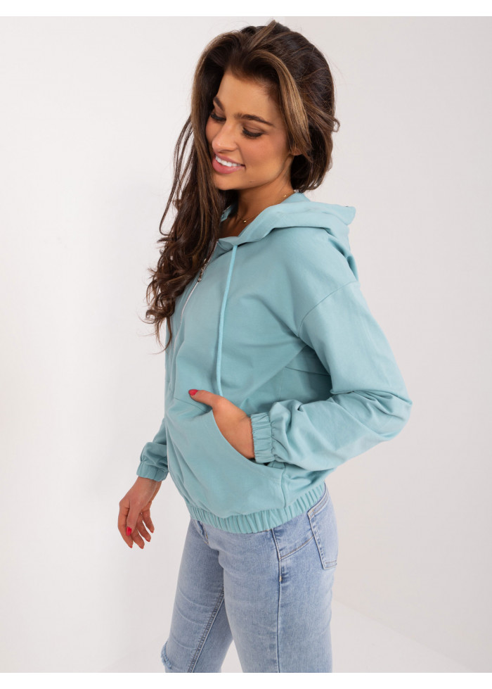 Dámska bavlnená mikina s kapucňou, šnúrka na kapucni, zapínanie na zips, 2 vrecká, ozdobne prešívané, guma na konci rukávov a v spodnej časti, voľnejší strih, univerzálna veľkosť, miery modelky: 173 cm, prsia: 90 cm, pás: 64 cm, boky: 93 cm, rozmer produktu meraného na plocho:, šírka pod plecami: 54 cm, dĺžka rukáva: 58 cm, celková dĺžka: 56 cm.