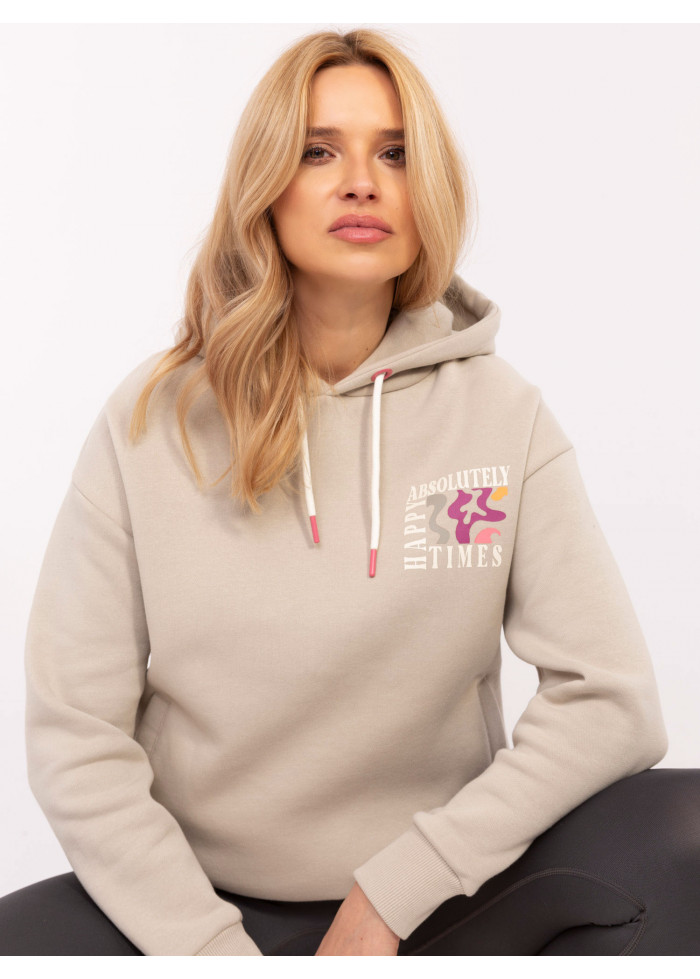 Dámska mikina s kapucňou, neodopínateľná kapucňa so šnúrkami, dlhé rukávy s lémom, 2 bočné vrecká, potlač a nádpis na prednej časti, potlač na zadnej strane, lém v spodnej časti, modelka má na sebe univerzálnu veľkosť, miery modelky: výška 175 cm, prsia 90 cm, pás 66 cm, boky 94 cm, rozmer produktu meraného na plocho:, šírka pod plecami: 57 cm, dĺžka rukáva: 54 cm, celková dĺžka: 67 cm, obvod bokov: 112 cm.