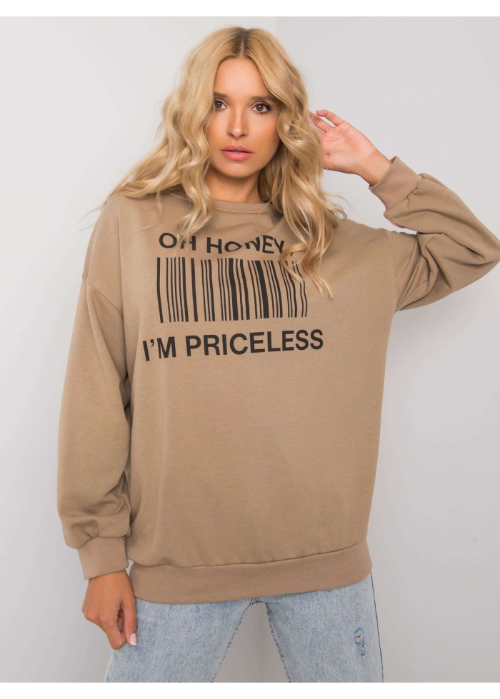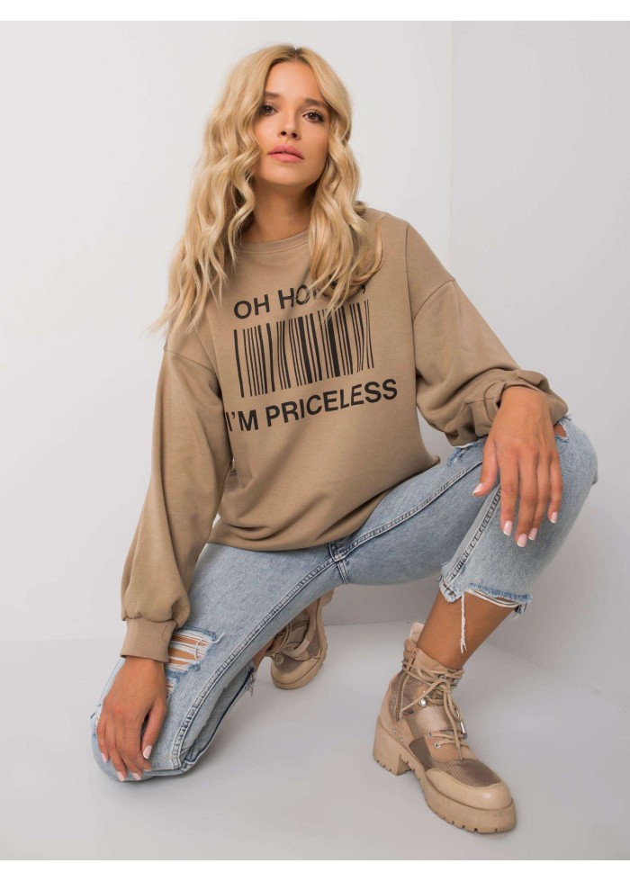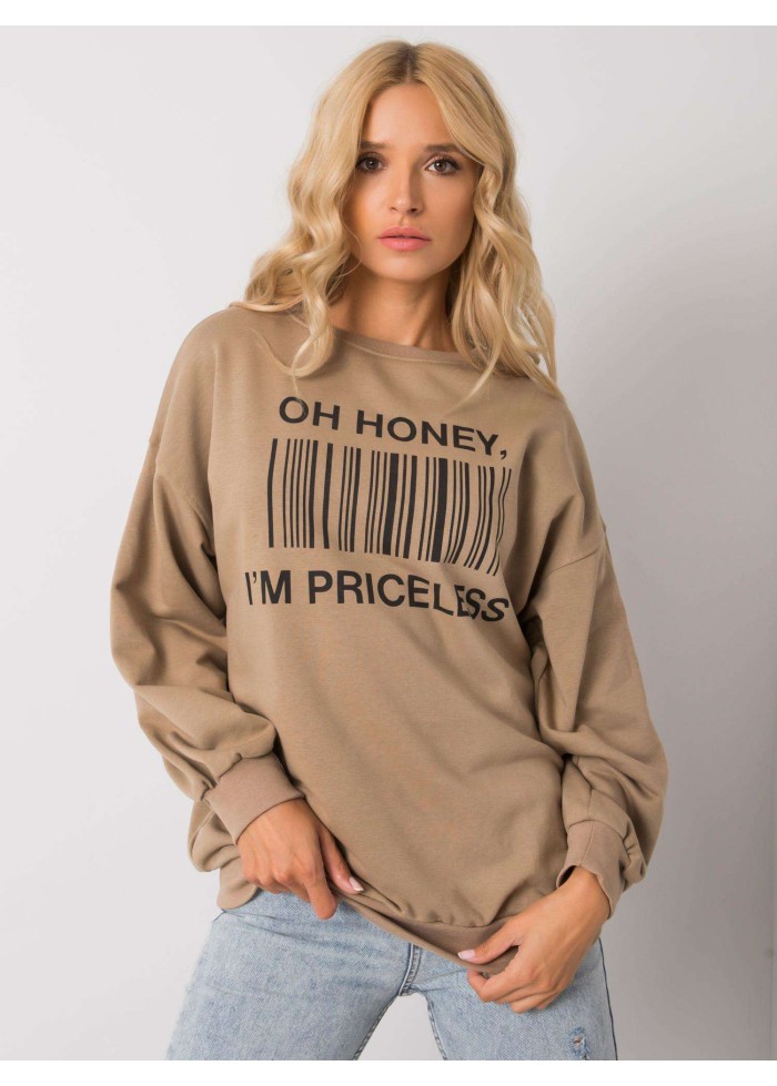 Dámska mikina, okrúhly výstrih, dlhé široké rukávy, potlač a nádpis na prednej časti, pohodlný voľný strih, jemné sťahujúce lémy na koncoch rukávov a v spodnej časti, materiál: 70% bavlna, 30% polyester, spôsob prania: pranie v práčke na 30°c, modelka má na sebe veľkosť s/m. miery modelky: výška 175 cm, prsia 84 cm, pás 65 cm, boky 92 cm., rozmery mikiny vo veľkosti s/m merané naplocho: šírka v podpazuší - 60 cm, celková dĺžka - 67 cm, dĺžka rukáva - 57 cm.