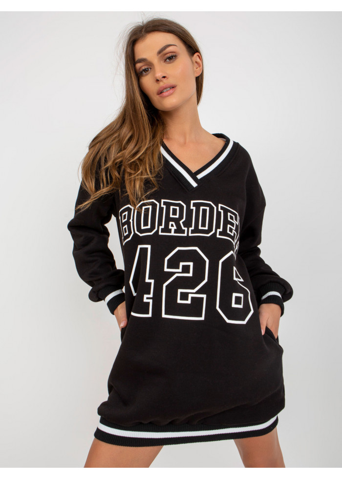 Dámska mikina s potlačou, výstrih do v, lémy na koncoch rukávov v spodnej časti a pri krku, 2 bočné vrecká, voľnejší strih, univerzálna veľkosť, miery modelky: výška: 173 cm, prsia: 85 cm, pás: 62 cm, boky: 95 cm, rozmer produktu meraného na plocho:, šírka pod plecami: 57 cm, dĺžka rukáva: 61 cm, celková dĺžka: 83 cm.