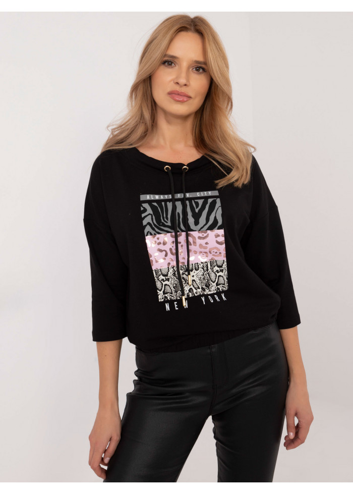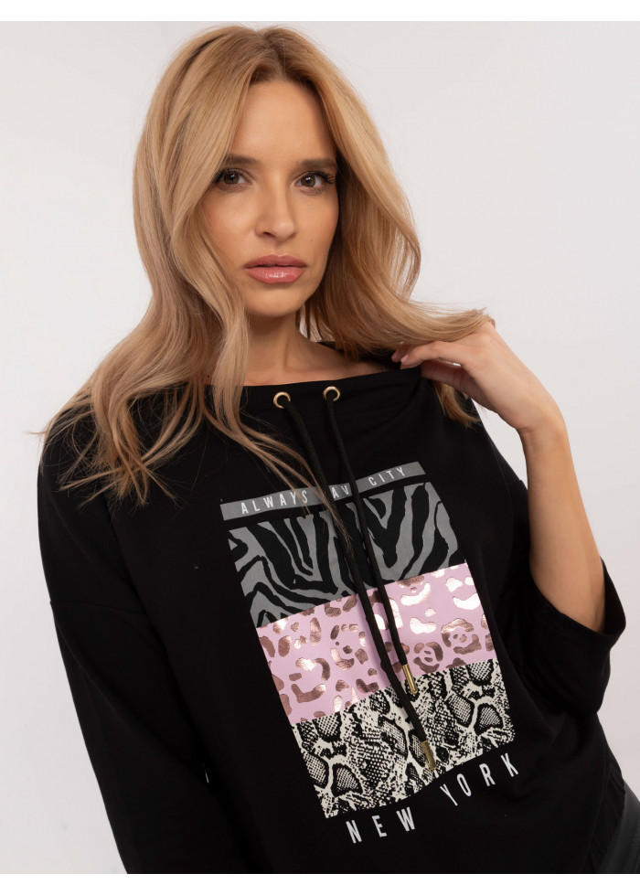 Dámska mikina new york, 3/4 rukávy, vyšší golier so šnúrkou, potlač v prednej časti, sťahujúca guma v spodnej časti, modelka má na sebe veľkosť s, miery modelky: výška 175 cm, prsia 90 cm, pás 66 cm, boky 94 cm, rozmery mikiny vo veľkosti s merané na plocho:, šírka v podpazuší - 59 cm, dĺžka blúzky - 59 cm, dĺžka rukáva - 30 cm (od švu).