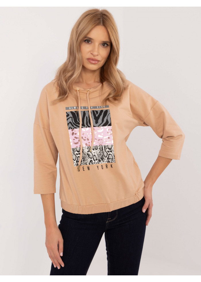 Dámska mikina new york, 3/4 rukávy, vyšší golier so šnúrkou, potlač v prednej časti, sťahujúca guma v spodnej časti, modelka má na sebe veľkosť s, miery modelky: výška 175 cm, prsia 90 cm, pás 66 cm, boky 94 cm, rozmery mikiny vo veľkosti s merané na plocho:, šírka v podpazuší - 59 cm, dĺžka blúzky - 59 cm, dĺžka rukáva - 30 cm (od švu).
