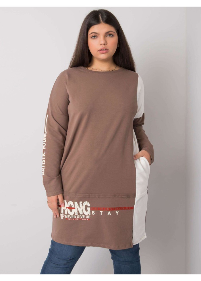 Mikinová tunika, mikinové šaty, dlhý rukáv, okrúhly výstrih, dvojfarebná kombinácia, ozdobná potlač, spôsob prania: pranie v práčke na 30°c, materiál: 90% bavlna, 10% elastan, univerzálna veľkosť, miery modelky: výška: 172 cm, prsia: 102 cm, pás: 77 cm, boky: 118 cm, rozmer produktu meraného na plocho:, šírka pod plecami: 59 cm, dĺžka rukáva: 57 cm, celková dĺžka: 91 cm.