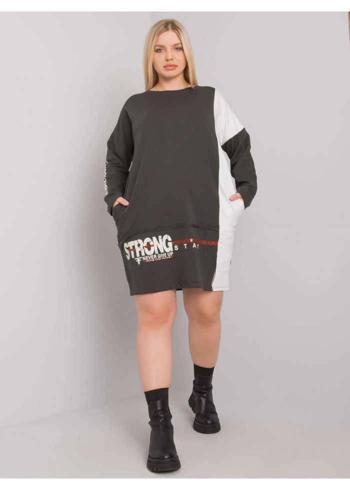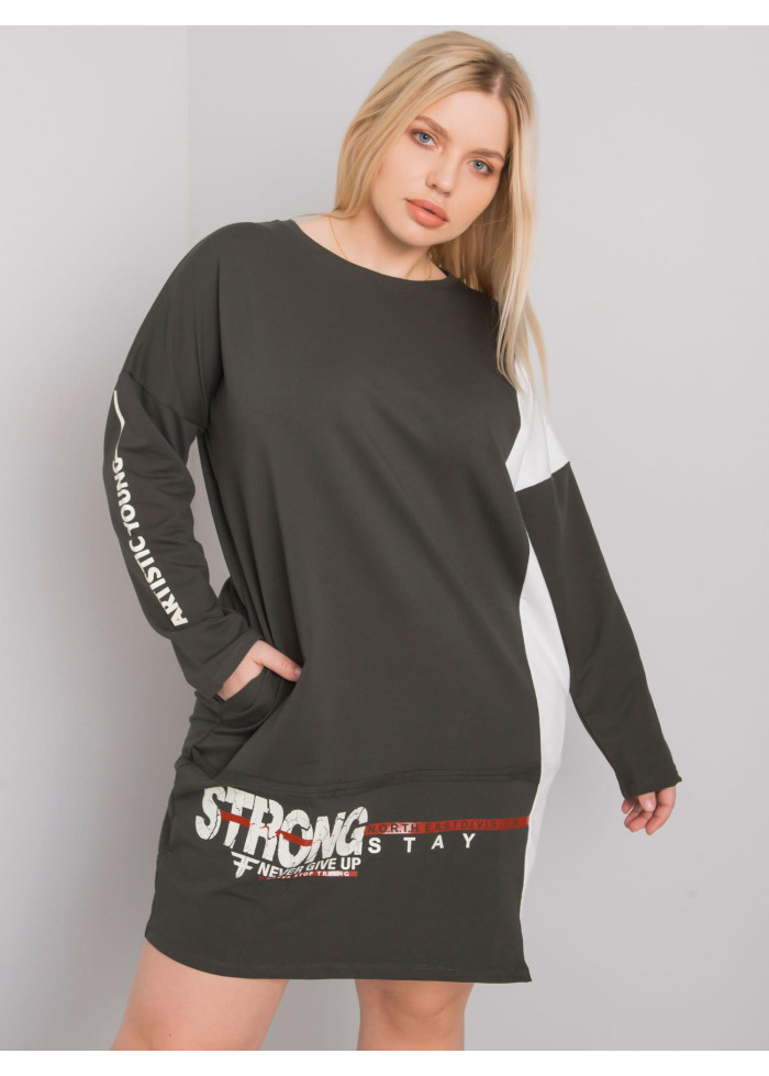 Mikinová tunika, mikinové šaty, dlhý rukáv, okrúhly výstrih, dvojfarebná kombinácia, ozdobná potlač, spôsob prania: pranie v práčke na 30°c, materiál: 90% bavlna, 10% elastan, univerzálna veľkosť, miery modelky: výška: 172 cm, prsia: 102 cm, pás: 77 cm, boky: 118 cm, rozmer produktu meraného na plocho:, šírka pod plecami: 59 cm, dĺžka rukáva: 57 cm, celková dĺžka: 91 cm.