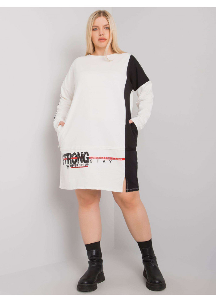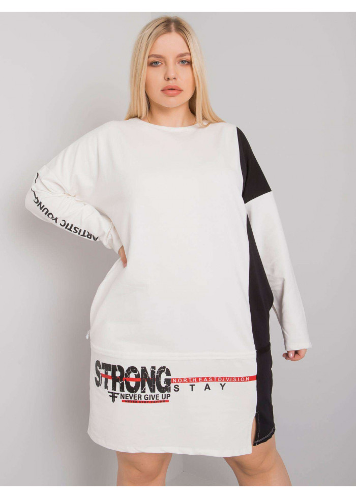 Mikinová tunika, mikinové šaty, dlhý rukáv, okrúhly výstrih, dvojfarebná kombinácia, ozdobná potlač, spôsob prania: pranie v práčke na 30°c, materiál: 90% bavlna, 10% elastan, univerzálna veľkosť, miery modelky: výška: 172 cm, prsia: 102 cm, pás: 77 cm, boky: 118 cm, rozmer produktu meraného na plocho:, šírka pod plecami: 59 cm, dĺžka rukáva: 57 cm, celková dĺžka: 91 cm.