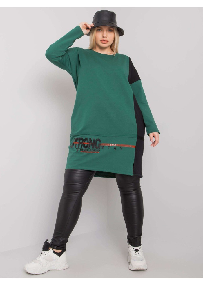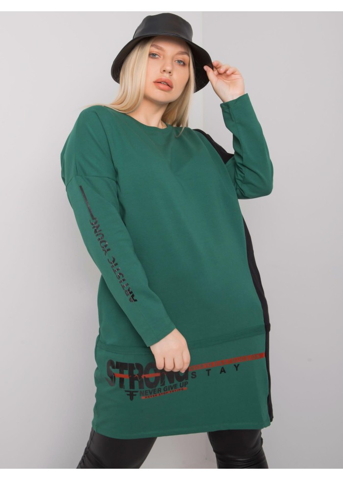 Mikinová tunika, mikinové šaty, dlhý rukáv, okrúhly výstrih, dvojfarebná kombinácia, ozdobná potlač, spôsob prania: pranie v práčke na 30°c, materiál: 90% bavlna, 10% elastan, univerzálna veľkosť, miery modelky: výška: 172 cm, prsia: 102 cm, pás: 77 cm, boky: 118 cm, rozmer produktu meraného na plocho:, šírka pod plecami: 59 cm, dĺžka rukáva: 57 cm, celková dĺžka: 91 cm.