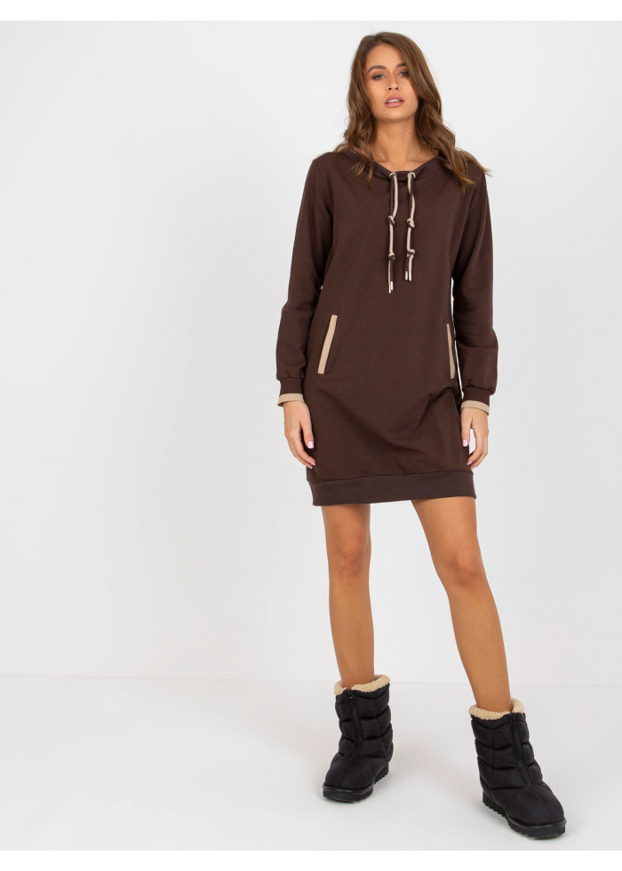 Mikinová tunika, dámska predĺžená mikina, teplákové minišaty, ozdobná šnúrka v dekolte, kontrastné lémy na rukávoch, lém v spodnej časti, 2 vrecká, univerzálna veľkosť, miery modelky: výška: 175 cm, prsia: 85 cm, pás: 63 cm, boky: 95 cm, rozmer produktu meraného na plocho:, šírka pod plecami: 50 cm, dĺžka rukáva: 57 cm, celková dĺžka: 88 cm.