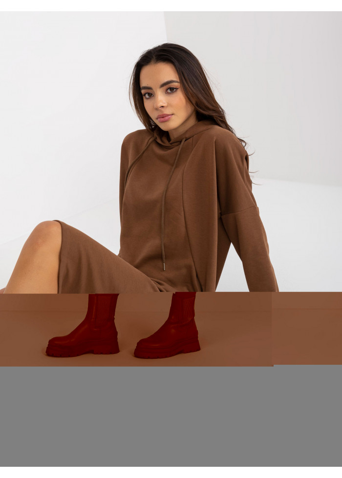 Dámske mikinové šaty s kapucňou, ozdobné šnúrky na kapucni, 2 vrecká, univerzálna veľkosť, miery modelky: výška: 175 cm, prsia: 84 cm, pás: 61 cm, boky: 91 cm, rozmer produktu meraného na plocho:, šírka pod plecami: 65 cm, dĺžka rukáva: 62 cm, celková dĺžka: 113 cm.