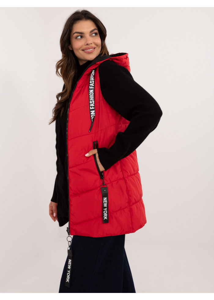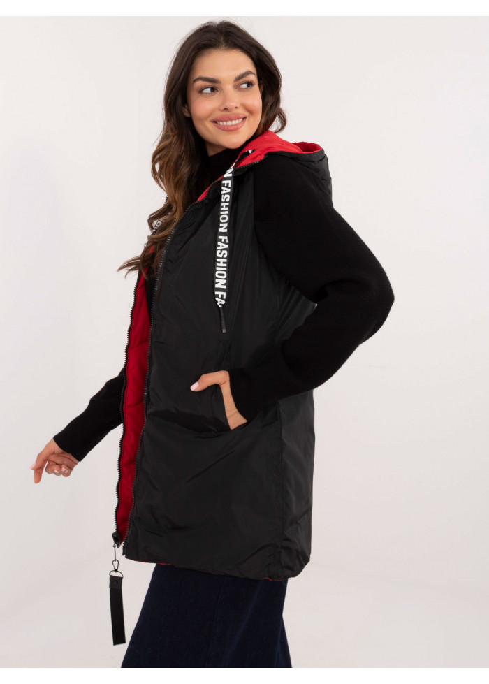 Obojstranná dámska bunda s kapucňou, bunda bez rukávov , pevná kapucňa so sťahovacími šnúrkami, 2 bočné vrecká, modelka má na sebe veľkosť s, miery modelky: výška 173 cm, prsia 85 cm, pás 62 cm, boky 95 cm, rozmer produktu meraného na plocho, vo veľkosti s:, šírka pod pazuchami - 48 cm, celková dĺžka - 79 cm.