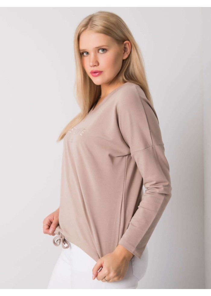 Dámske onesize tričko, dlhý rukáv, v- čkový výstrih, potlač v prednej časti, možnosť stiahnutia šnúrkou v spodnej časti, materiál: 90% bavlna, 10% elastan, spôsob prania: pranie v práčke na 30°c, modelka má oblečenú jednu veľkosť. miery modelky: výška 177 cm, prsia 100 cm, pás 80 cm, boky 110 cm., rozmery trička vo veľkosti one size sú merané naplocho: šírka v podpazuší - 52 cm, celková dĺžka - 57 cm, dĺžka rukáva - 56 cm.
