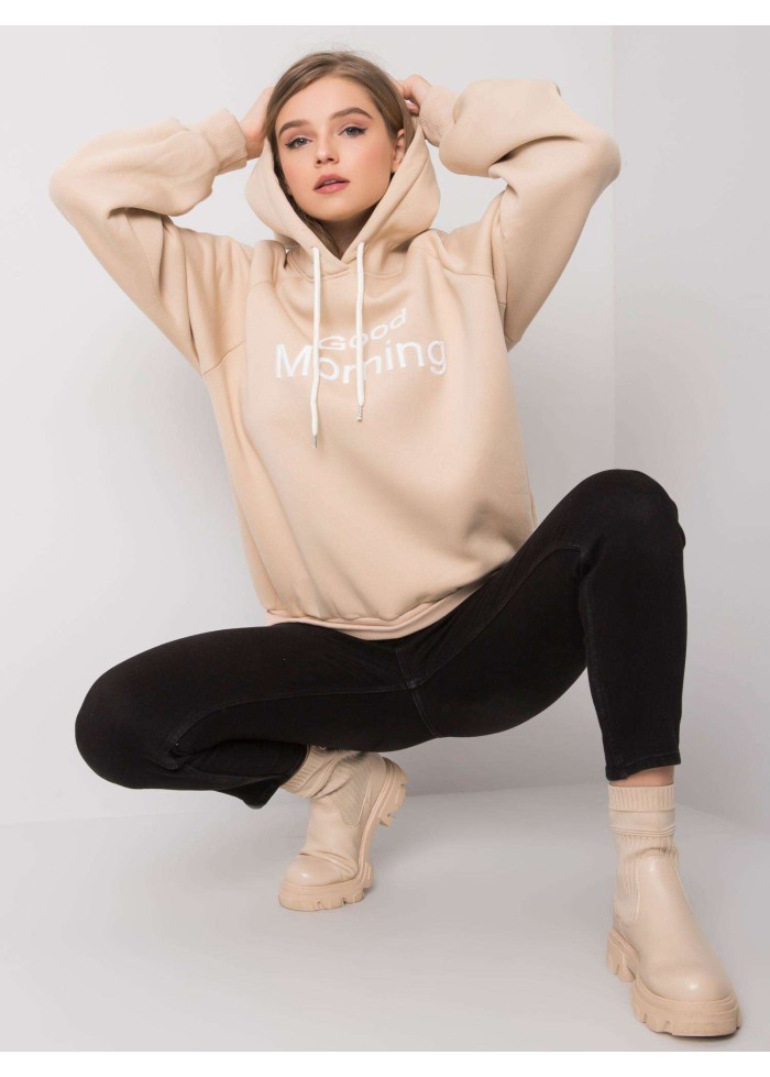 Béžovo hnedá oteplená mikina s kapucňou