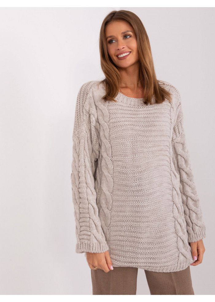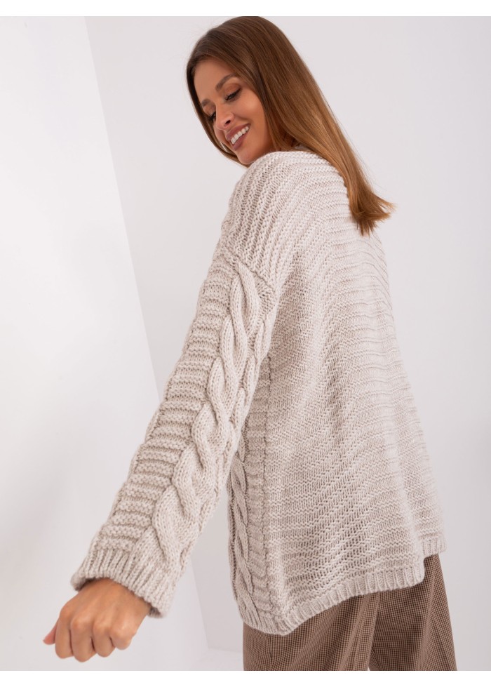 Pletený pulóver, okrúhly výstrih, univerzálna veľkosť, miery modelky: výška 176 cm, prsia 85 cm, pás 64 cm, boky 92 cm, rozmer produktu meraného na plocho:, šírka pod plecami: 75 cm, dĺžka rukáva: 60 cm, celková dĺžka: 70 cm.