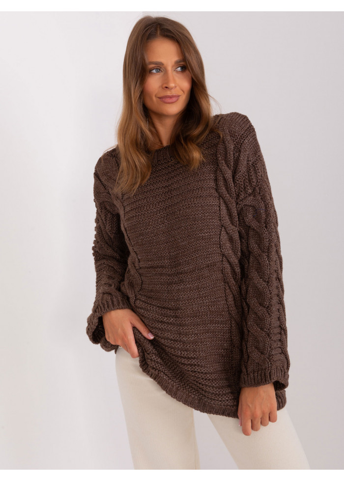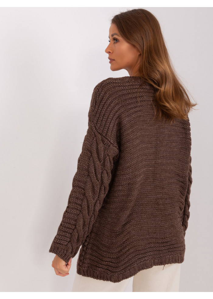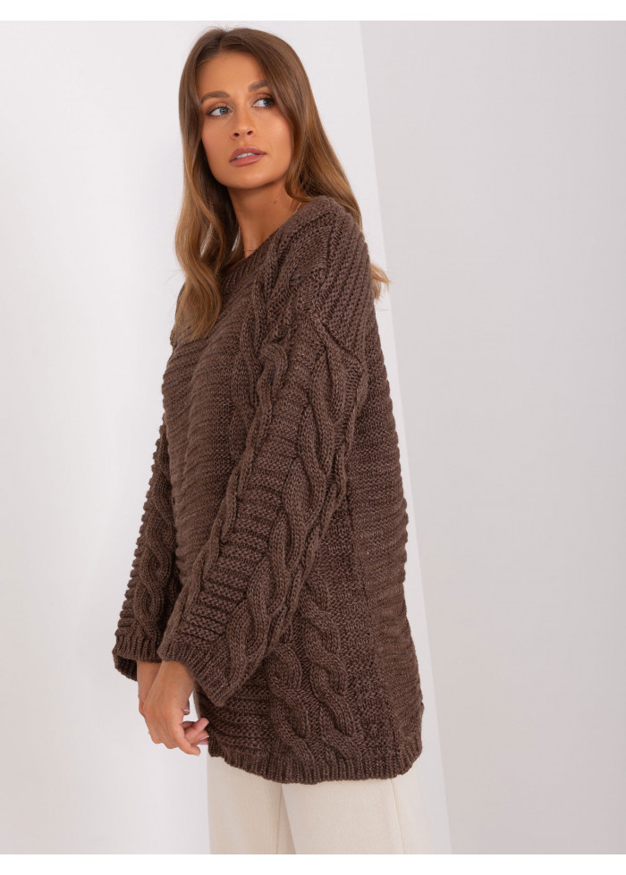 Pletený pulóver, okrúhly výstrih, univerzálna veľkosť, miery modelky: výška 176 cm, prsia 85 cm, pás 64 cm, boky 92 cm, rozmer produktu meraného na plocho:, šírka pod plecami: 75 cm, dĺžka rukáva: 60 cm, celková dĺžka: 70 cm.