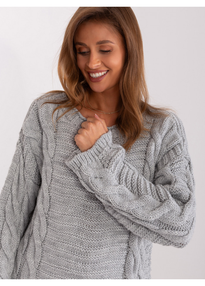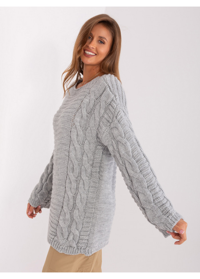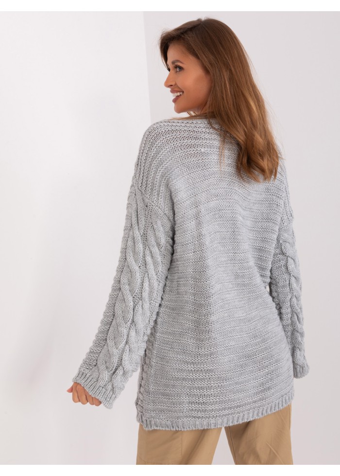 Pletený pulóver, okrúhly výstrih, univerzálna veľkosť, miery modelky: výška 176 cm, prsia 85 cm, pás 64 cm, boky 92 cm, rozmer produktu meraného na plocho:, šírka pod plecami: 75 cm, dĺžka rukáva: 60 cm, celková dĺžka: 70 cm.
