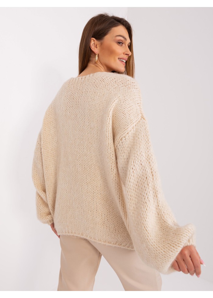 Pletený pulóver, výstrih do v, lémy na koncoch rukávov, voľnejší strih, univerzálna veľkosť, miery modelky: výška 170 cm, prsia 93 cm, pás 66 cm, boky 93 cm., rozmer produktu meraného na plocho:, šírka pod plecami: 75 cm, dĺžka rukáva: 55 cm, celková dĺžka: 65 cm.