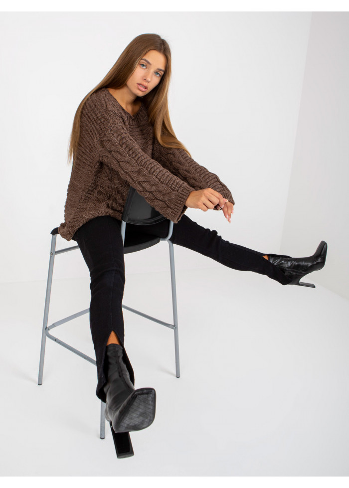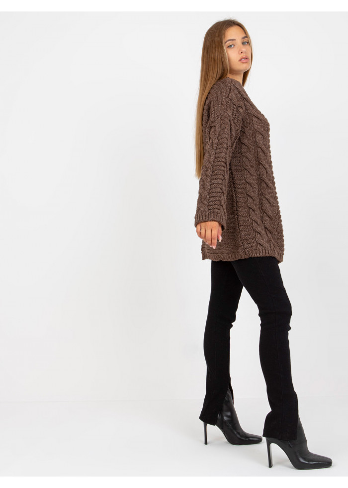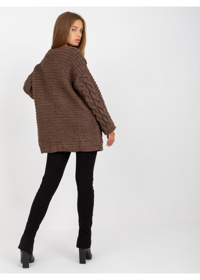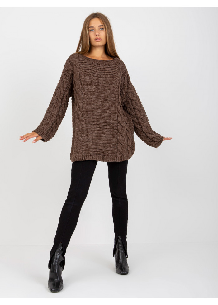 Dámsky pletený sveter, okrúhly výstrih, obliekanie cez hlavu, rozšírené rukávy, jednoduchý strih, spôsob prania: pranie v práčke na 30°c, materiál: 100% akryl, univerzálna veľkosť, miery modelky: výška: 163 cm, prsia: 86 cm, pás: 56 cm, boky: 88 cm, rozmer produktu meraného na plocho:, šírka pod plecami: 61 cm, dĺžka rukáva: 55 cm, celková dĺžka: 67 cm.