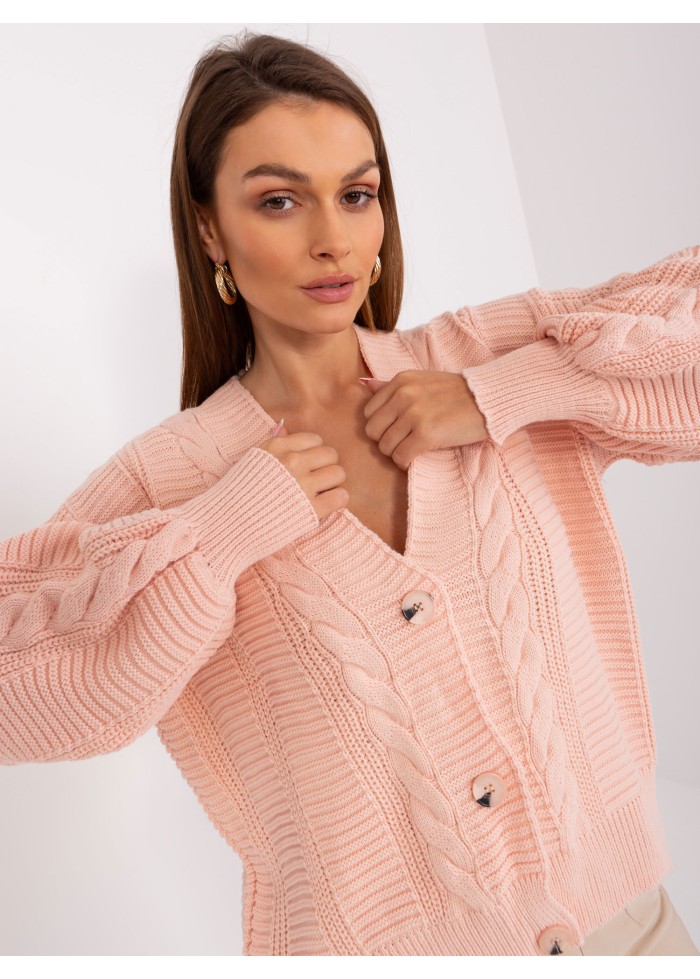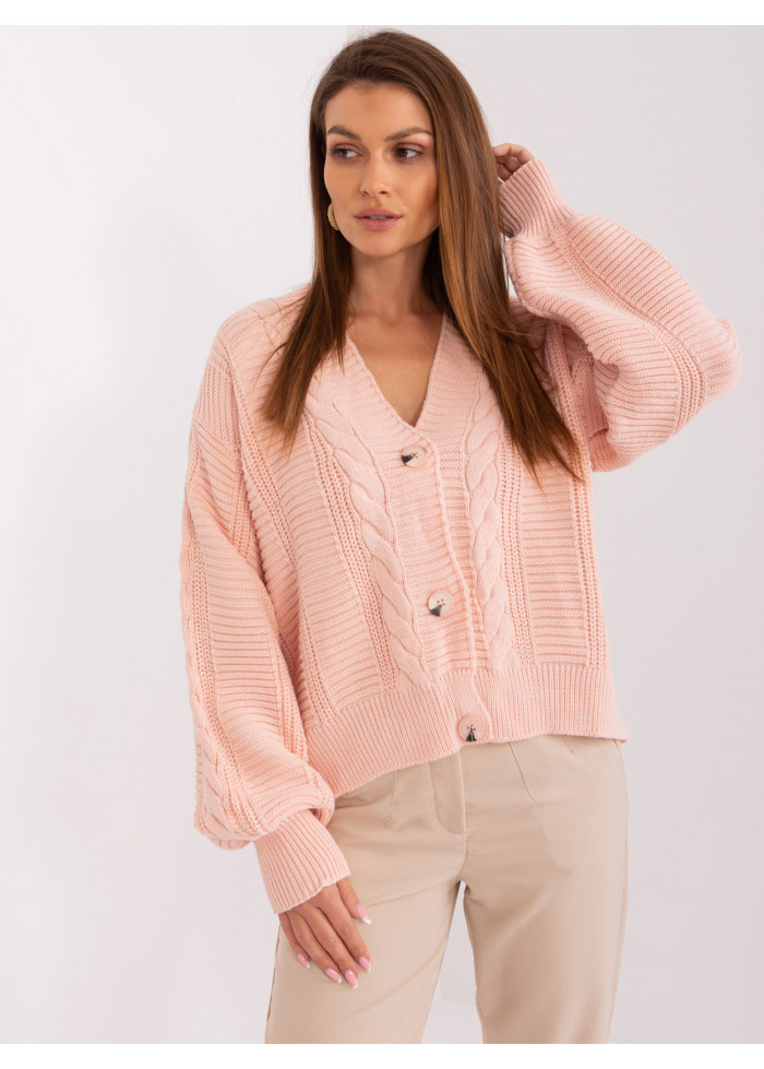 Dámsky pletený sveter, zapínanie na gombíky, výstrih do v, vysoké náplety na rukávoch, univerzálna veľkosť, miery modelky: výška 170 cm, prsia 93 cm, pás 66 cm, boky 93 cm., rozmer produktu meraného na plocho:, šírka pod plecami: 62 cm, dĺžka rukáva: 58 cm, celková dĺžka: 52 cm.