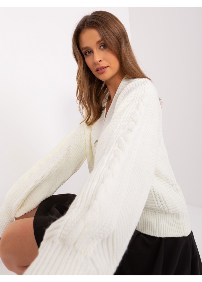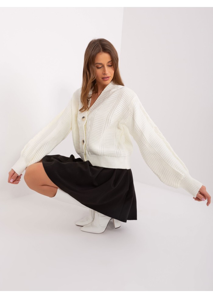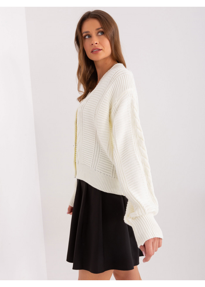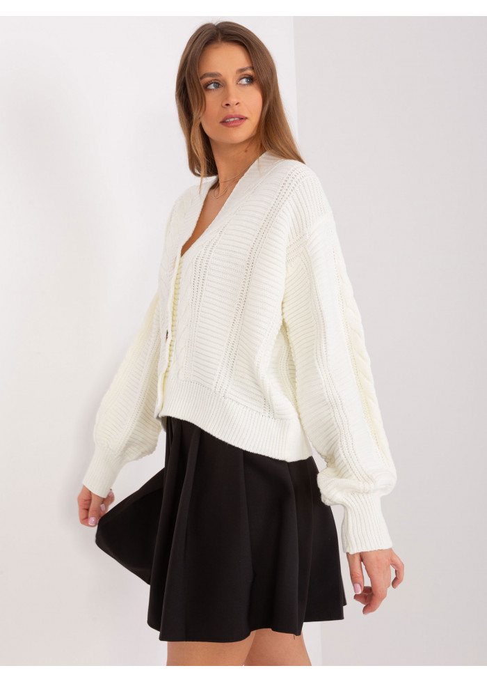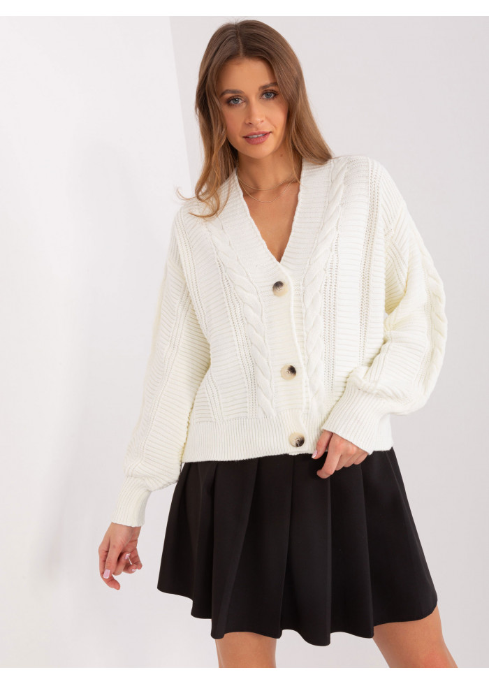 Dámsky pletený sveter, zapínanie na gombíky, výstrih do v, vysoké náplety na rukávoch, univerzálna veľkosť, miery modelky: výška 170 cm, prsia 93 cm, pás 66 cm, boky 93 cm., rozmer produktu meraného na plocho:, šírka pod plecami: 62 cm, dĺžka rukáva: 58 cm, celková dĺžka: 52 cm.