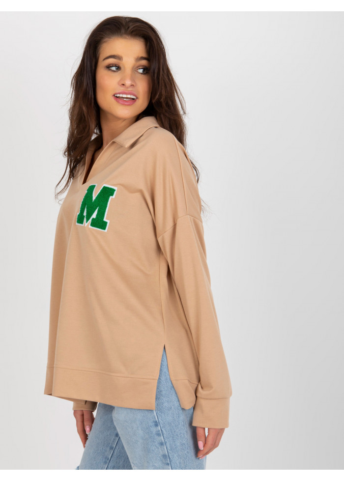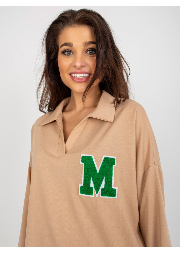 Dámska polokošeľa, výstrih do v, lémy na koncoch rukávov a v spodnej časti, rozparky na bokoch, ozdobná nášivka, univerzálna veľkosť, miery modelky: 173 cm, prsia: 90 cm, pás: 64 cm, boky: 93 cm, rozmer produktu meraného na plocho:, šírka pod plecami: 65 cm, dĺžka rukáva: 62 cm, celková dĺžka: 67 cm.