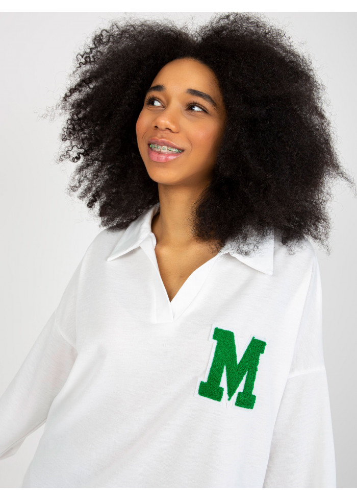 Dámska polokošeľa, výstrih do v, lémy na koncoch rukávov a v spodnej časti, rozparky na bokoch, ozdobná nášivka, univerzálna veľkosť, miery modelky: 173 cm, prsia: 90 cm, pás: 64 cm, boky: 93 cm, rozmer produktu meraného na plocho:, šírka pod plecami: 65 cm, dĺžka rukáva: 62 cm, celková dĺžka: 67 cm.