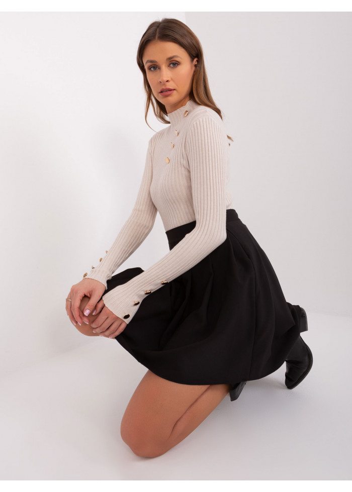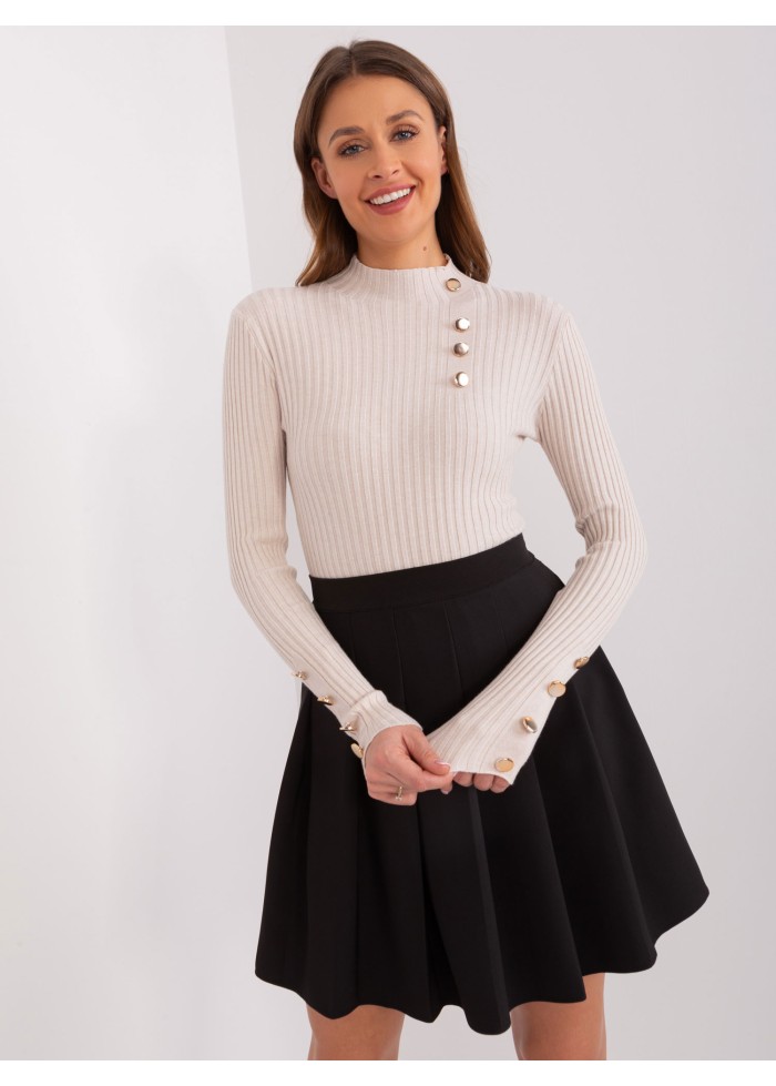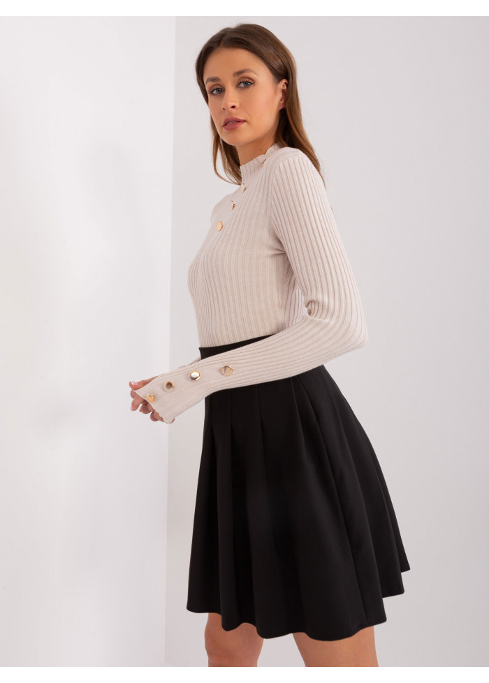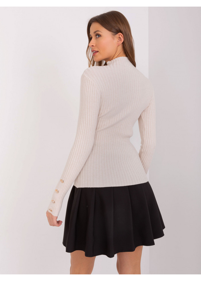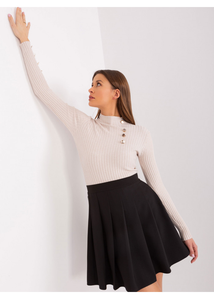 Úpletový polorolák, rebrovaný úplet, ozdobné gombíky na rukávoch, modelka má na sebe veľkosť s/m. miery modelky: výška 170 cm, prsia 93 cm, pás 66 cm, boky 93 cm., rozmer produktu meraného na plocho, vo veľkosti s/m:, šírka pod plecami: 38 cm, dĺžka rukáva: 59 cm, celková dĺžka: 56 cm.