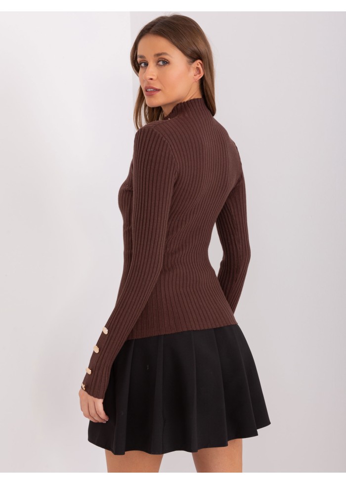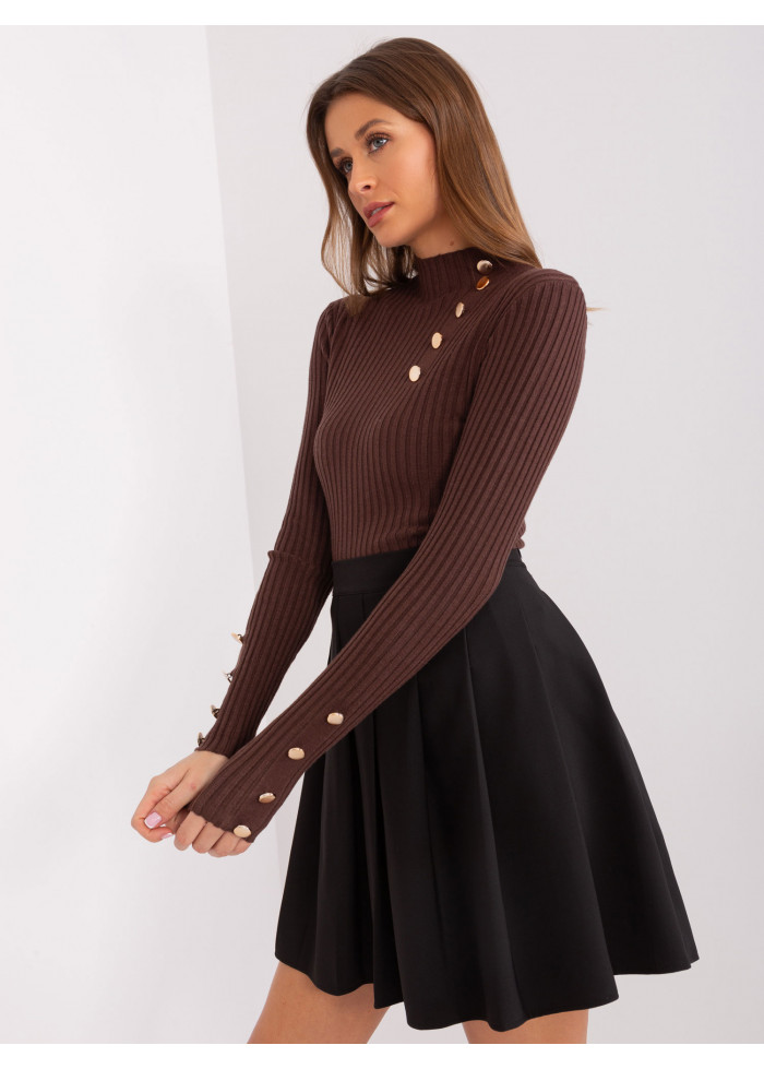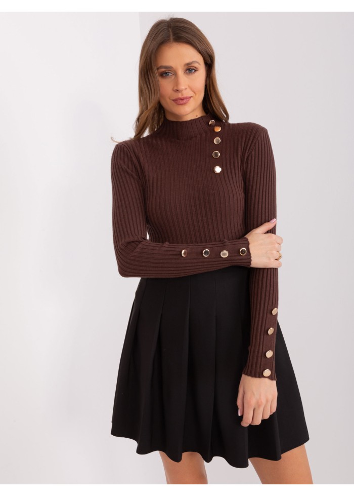 Úpletový polorolák, rebrovaný úplet, ozdobné gombíky na rukávoch, modelka má na sebe veľkosť s/m. miery modelky: výška 170 cm, prsia 93 cm, pás 66 cm, boky 93 cm., rozmer produktu meraného na plocho, vo veľkosti s/m:, šírka pod plecami: 38 cm, dĺžka rukáva: 59 cm, celková dĺžka: 56 cm.