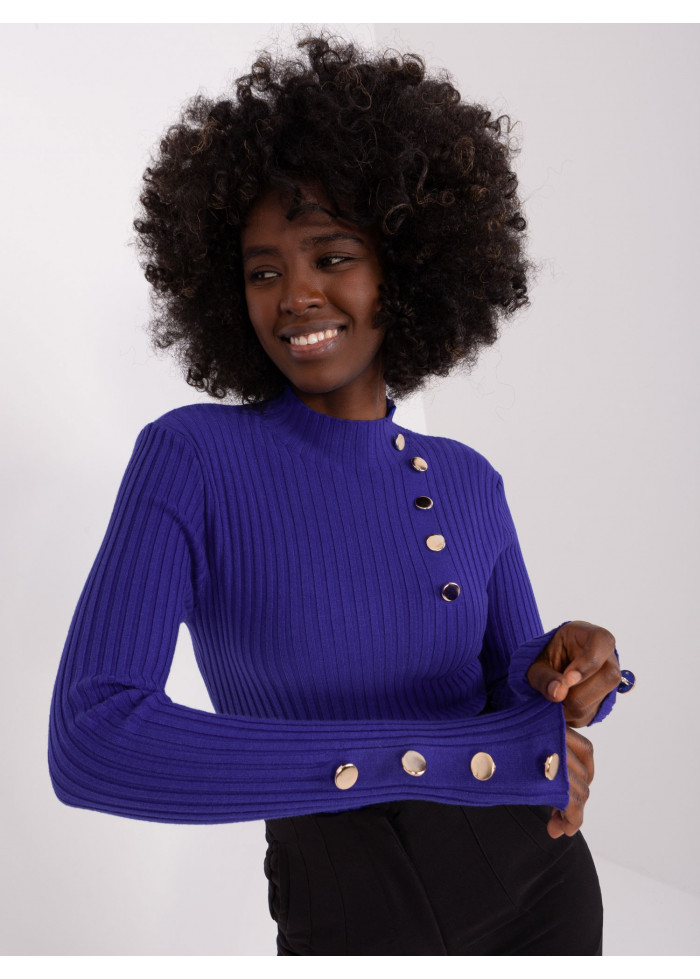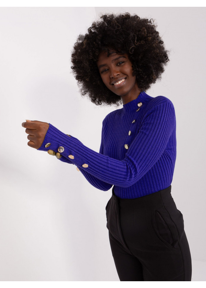Úpletový polorolák, rebrovaný úplet, ozdobné gombíky na rukávoch, modelka má na sebe veľkosť s/m. miery modelky: výška 170 cm, prsia 93 cm, pás 66 cm, boky 93 cm., rozmer produktu meraného na plocho, vo veľkosti s/m:, šírka pod plecami: 38 cm, dĺžka rukáva: 59 cm, celková dĺžka: 56 cm.