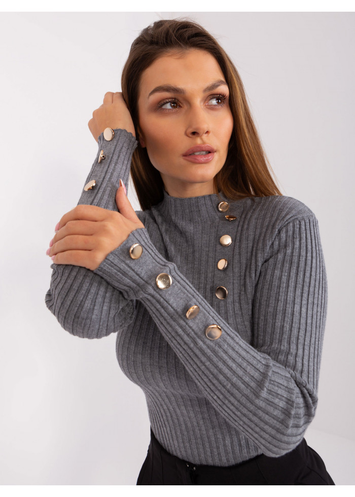 Úpletový polorolák, rebrovaný úplet, ozdobné gombíky na rukávoch, modelka má na sebe veľkosť s/m. miery modelky: výška 170 cm, prsia 93 cm, pás 66 cm, boky 93 cm., rozmer produktu meraného na plocho, vo veľkosti s/m:, šírka pod plecami: 38 cm, dĺžka rukáva: 59 cm, celková dĺžka: 56 cm.
