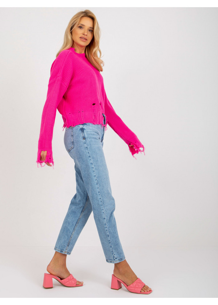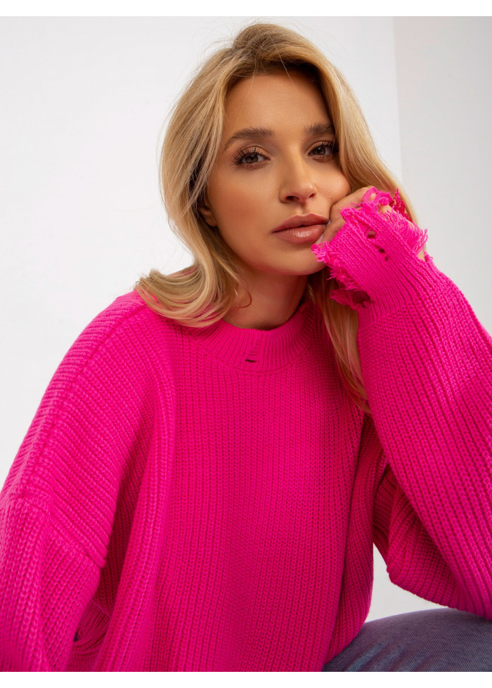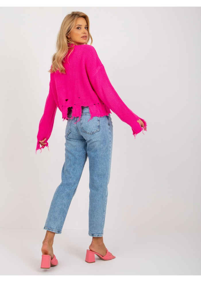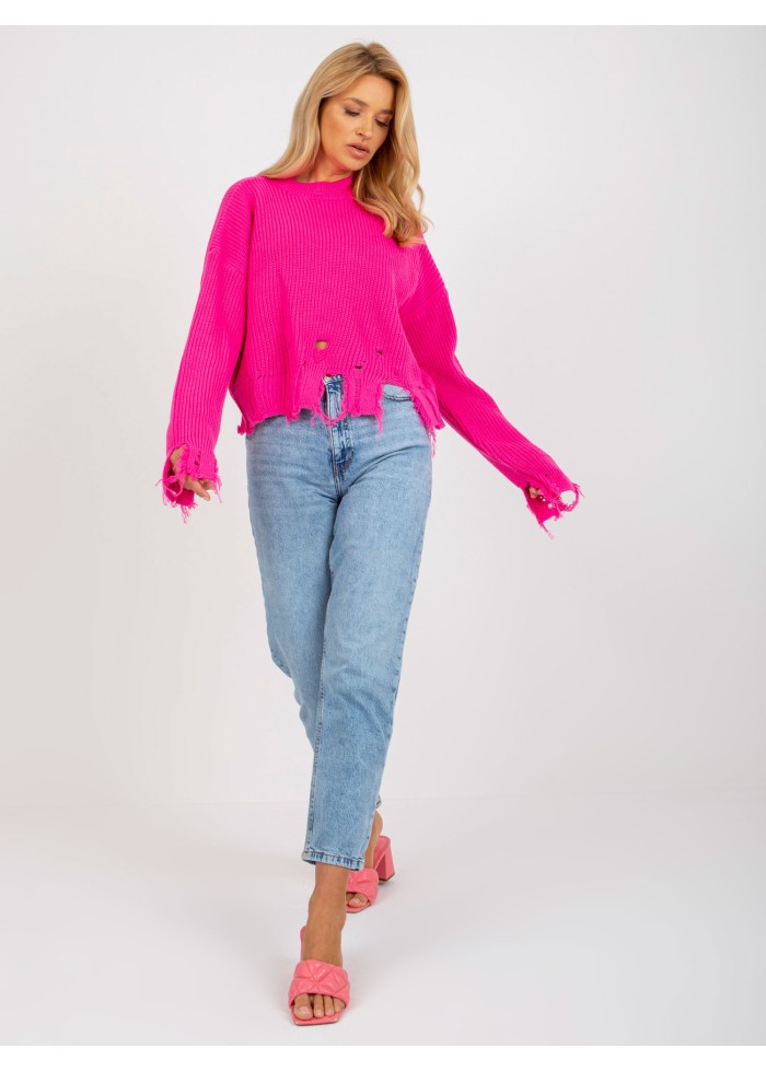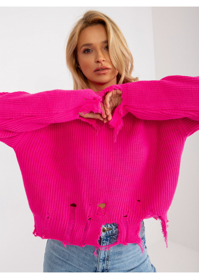 Neónovo ružový potrhaný sveter