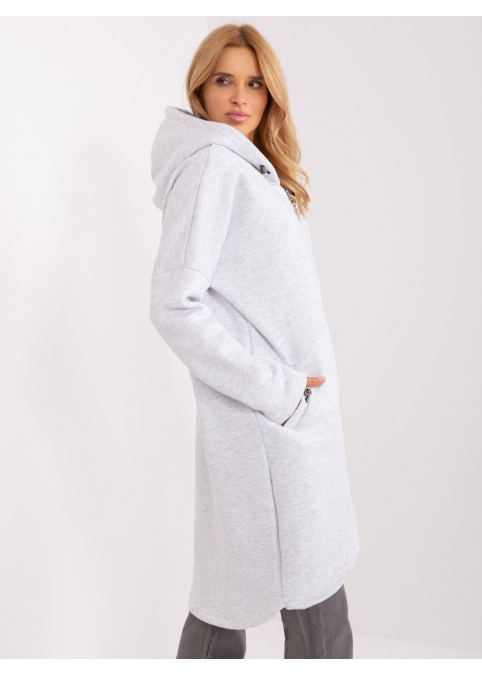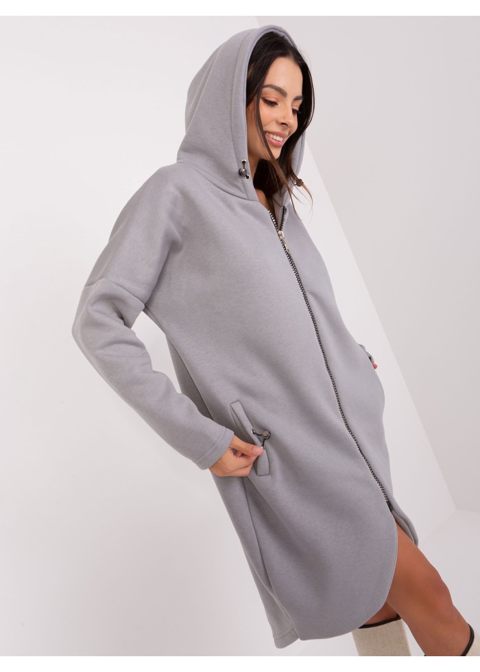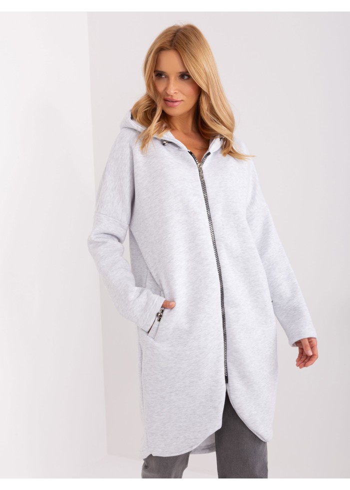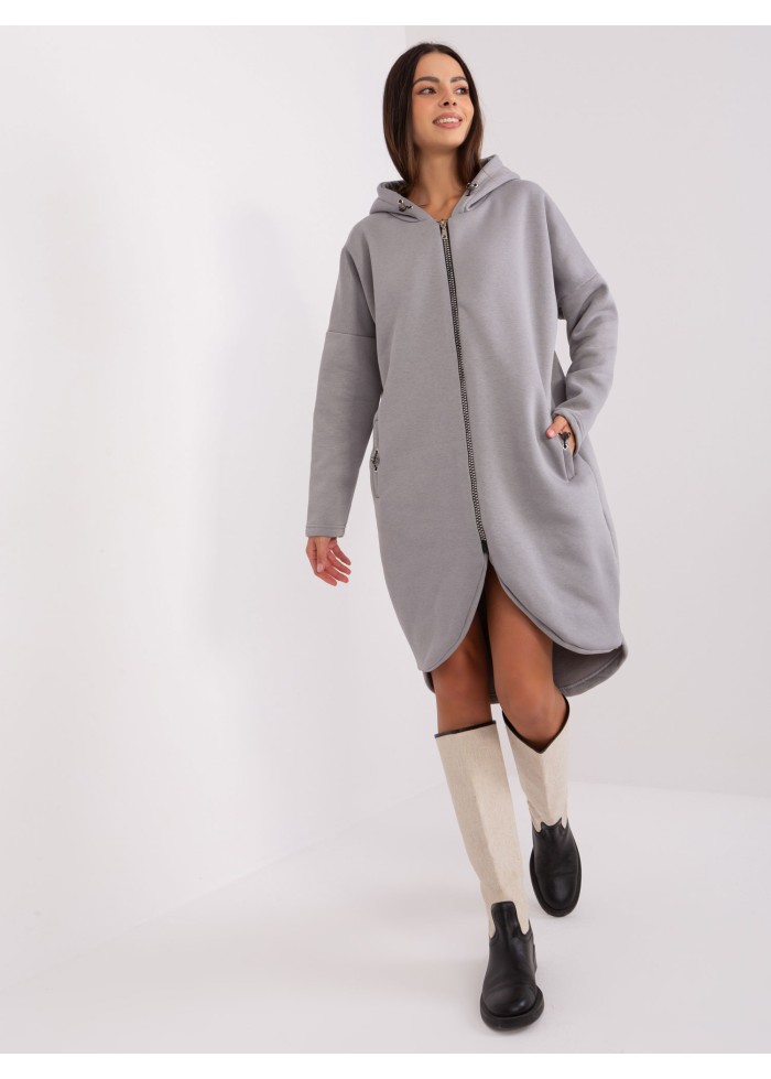 Predĺžená mikina s kapucňou, sťahujúca gumička na kapucni, zapínanie na zips, 2 vrecká, sťahujúce gumičky na vreckách, asymetrický strih, spôsob prania: pranie v práčke na 30°c, materiál: 90% bavlna, 10% elastan, modelka má na sebe veľkosť s/m, miery modelky: výška 162 cm, prsia 80 cm, pás 63 cm, boky 80 cm., rozmer produktu meraného na plocho, vo veľkosti s/m:, šírka pod plecami: 63 cm, celková dĺžka: 98 cm, dĺžka rukávov: 61 cm.