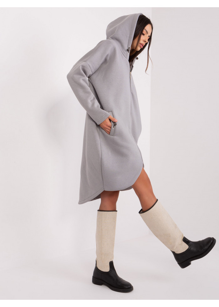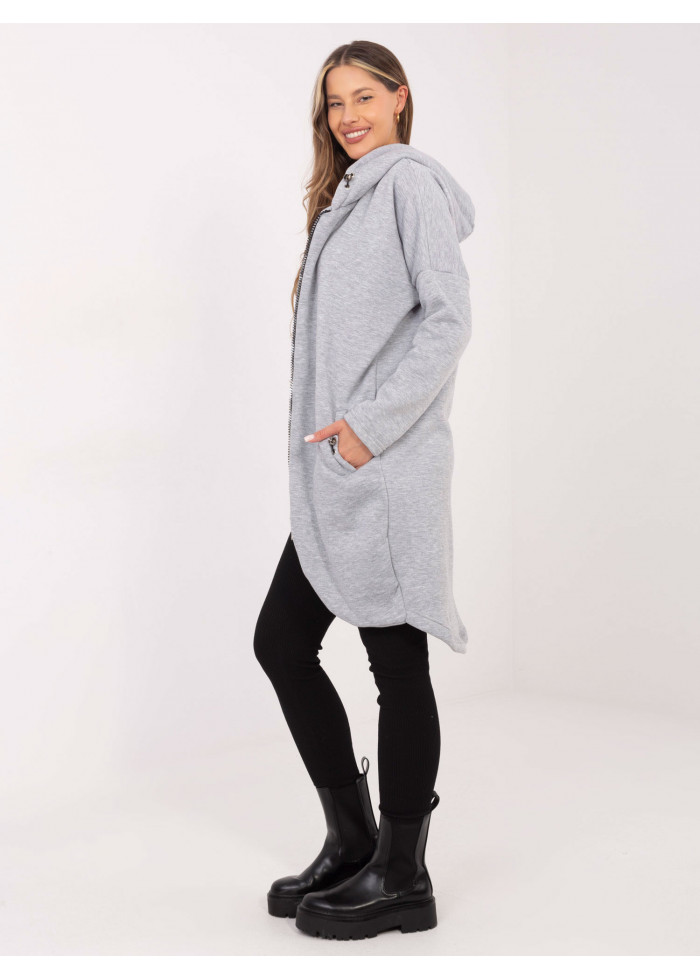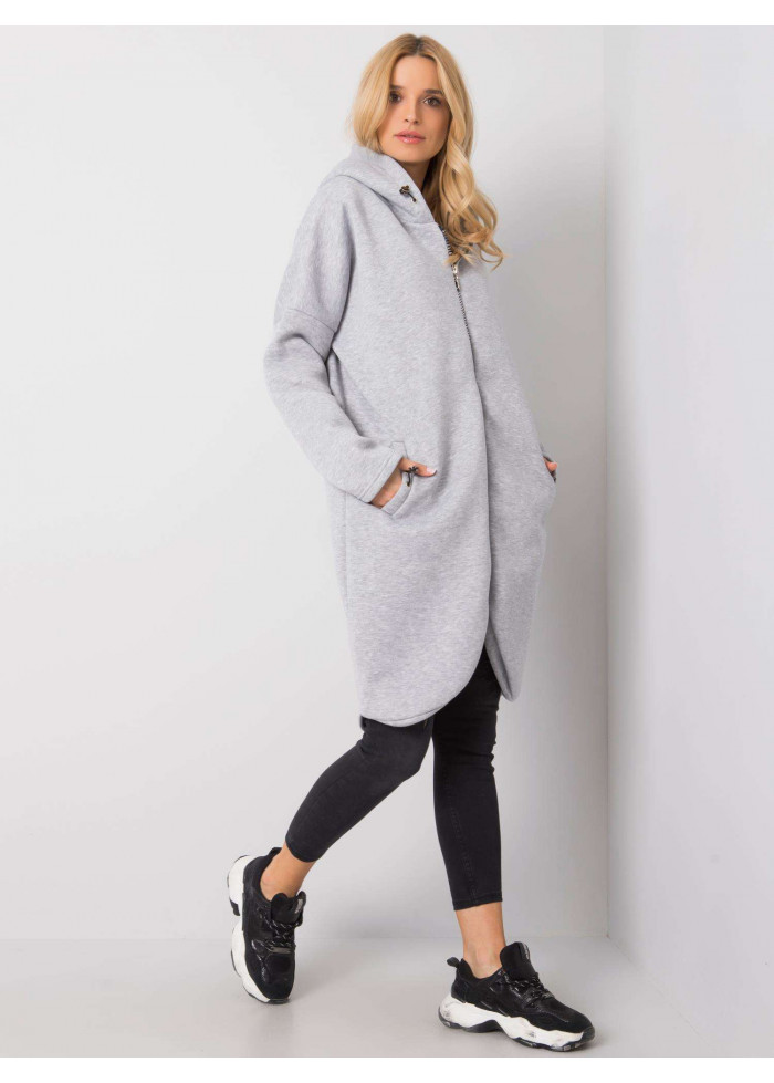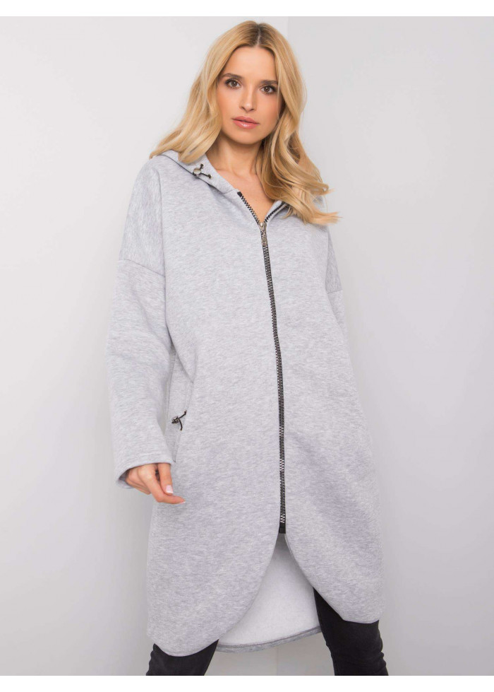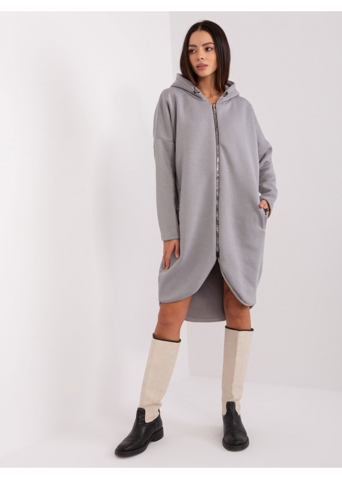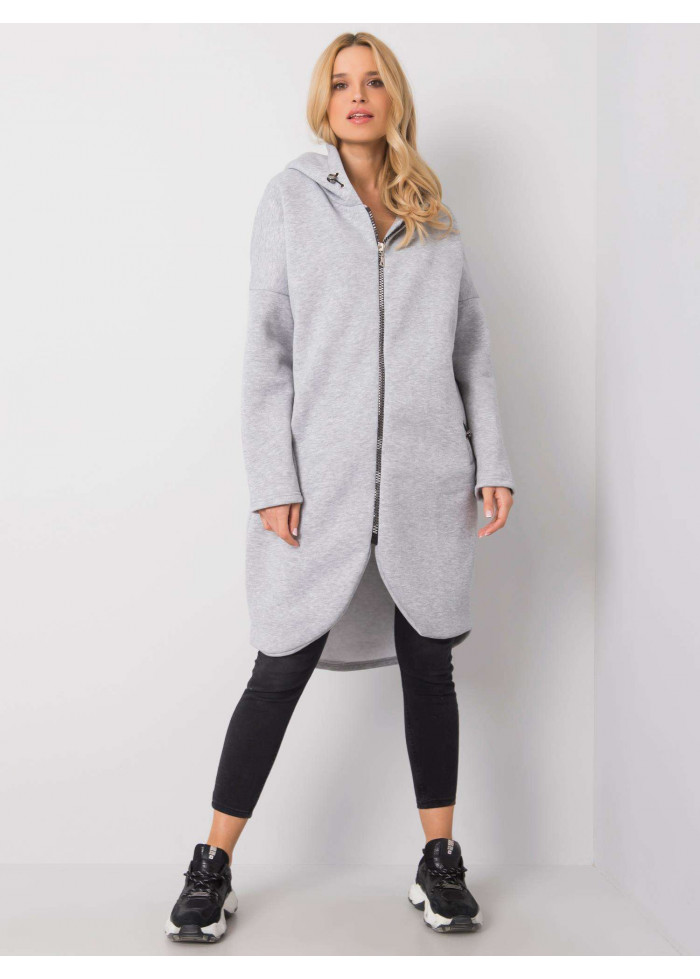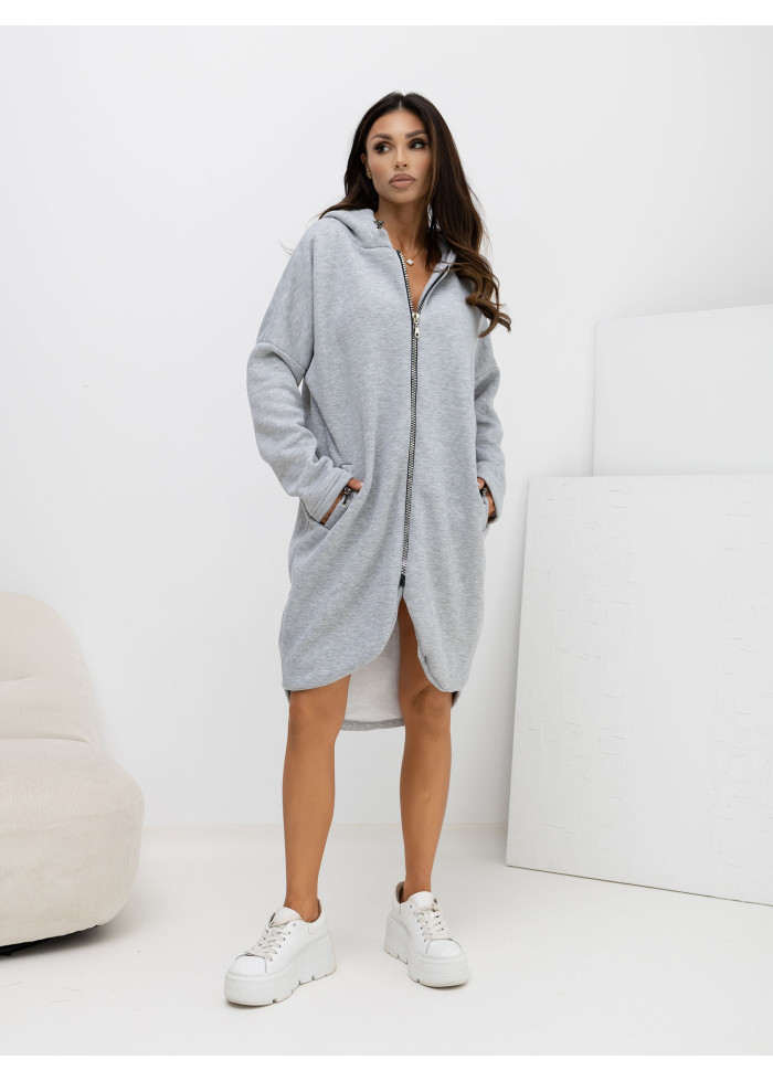 Predĺžená mikina s kapucňou, sťahujúca gumička na kapucni, zapínanie na zips, 2 vrecká, sťahujúce gumičky na vreckách, asymetrický strih, spôsob prania: pranie v práčke na 30°c, materiál: 90% bavlna, 10% elastan, modelka má na sebe veľkosť s/m, miery modelky: výška 162 cm, prsia 80 cm, pás 63 cm, boky 80 cm., rozmer produktu meraného na plocho, vo veľkosti s/m:, šírka pod plecami: 63 cm, celková dĺžka: 98 cm, dĺžka rukávov: 61 cm.